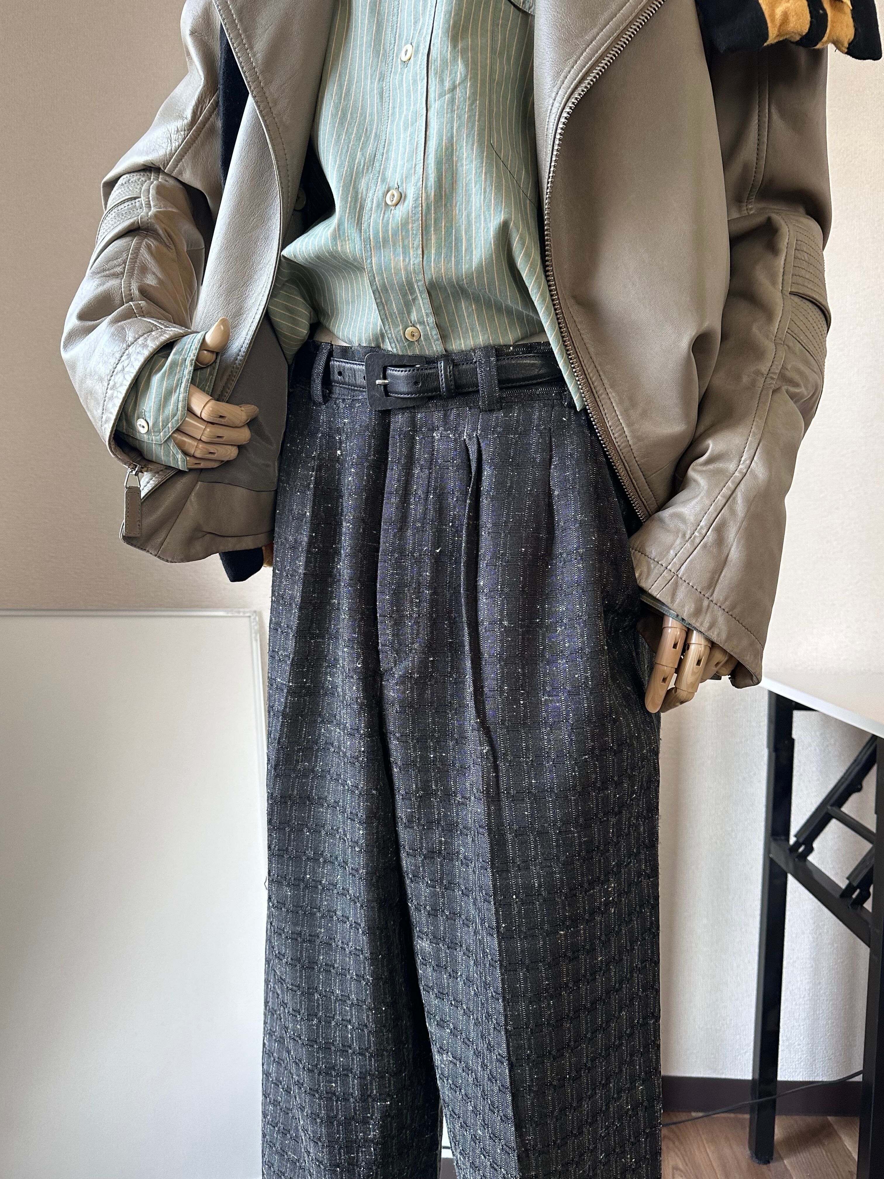 c80s MEXICO VTG Kasuri_ish Woven Pattern Wide Slacks