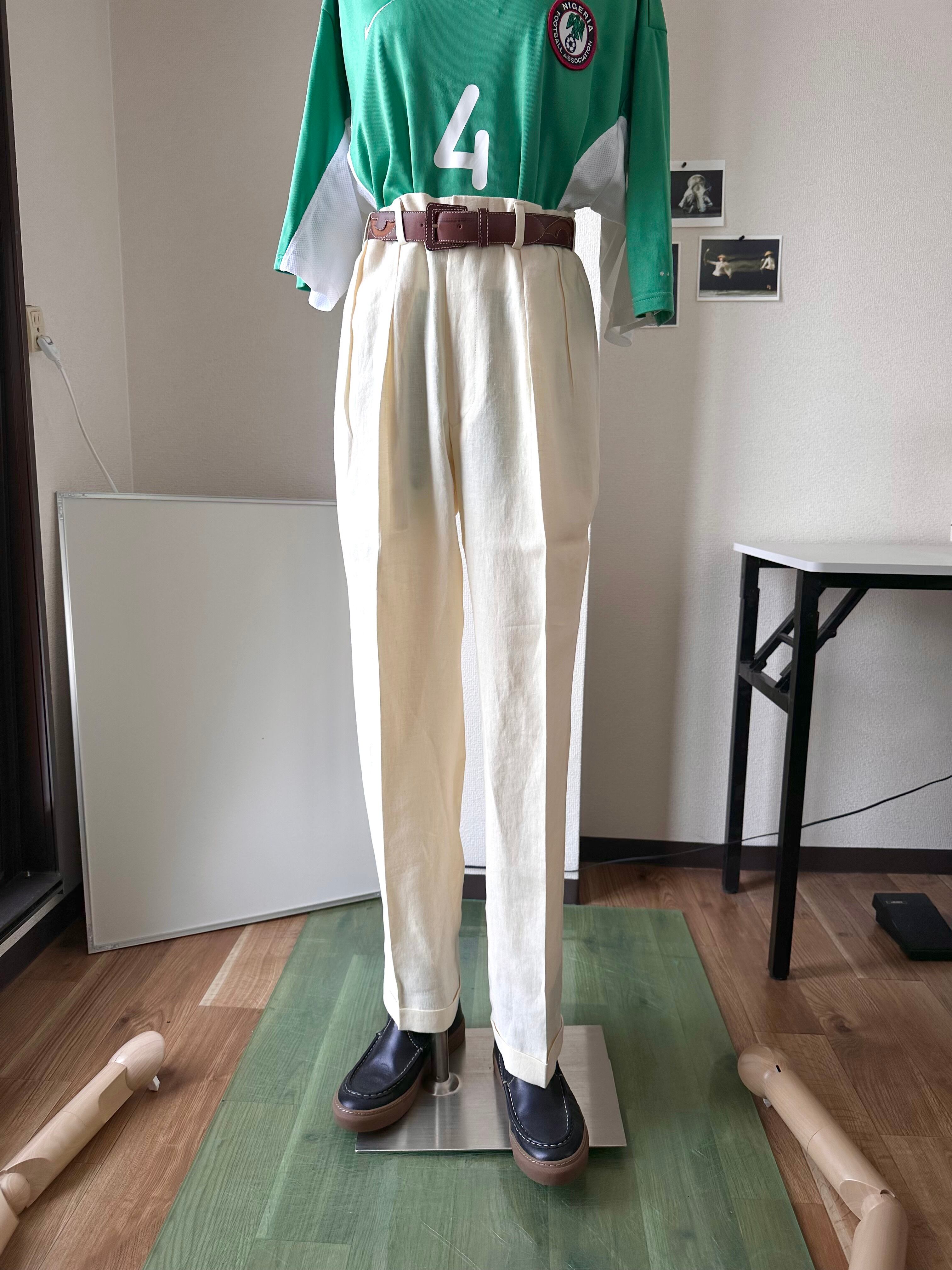 c90's POLO by RALPH LAUREN Airy_Beige Linen 2_Tucks Slacks
