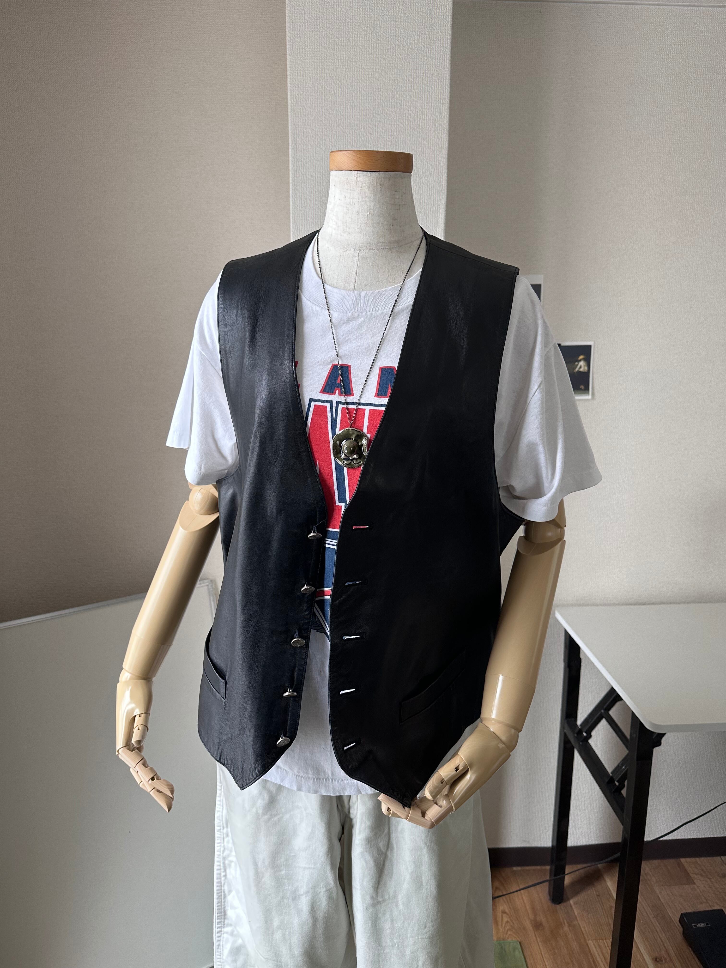 c80's AGNES B. HOMME Full Leather Tailored Soft Gilet