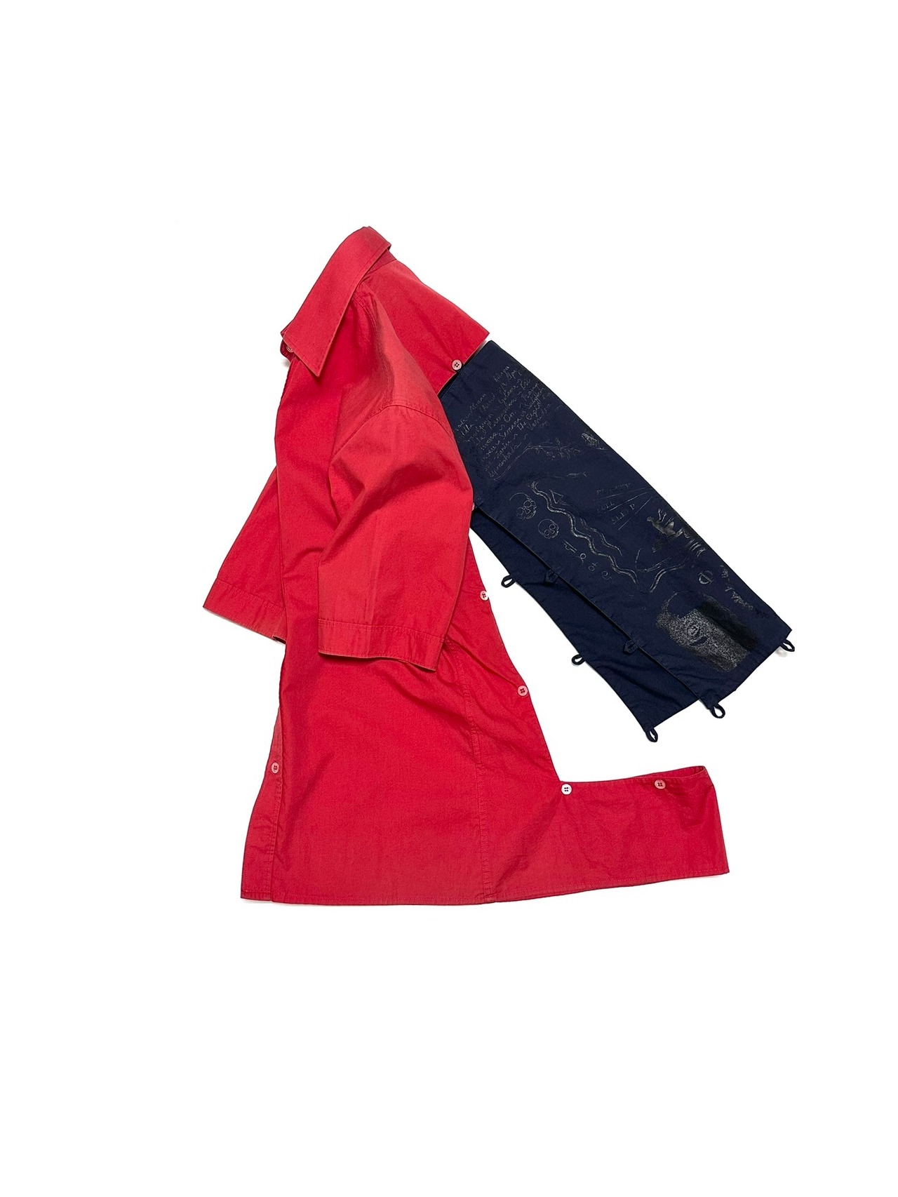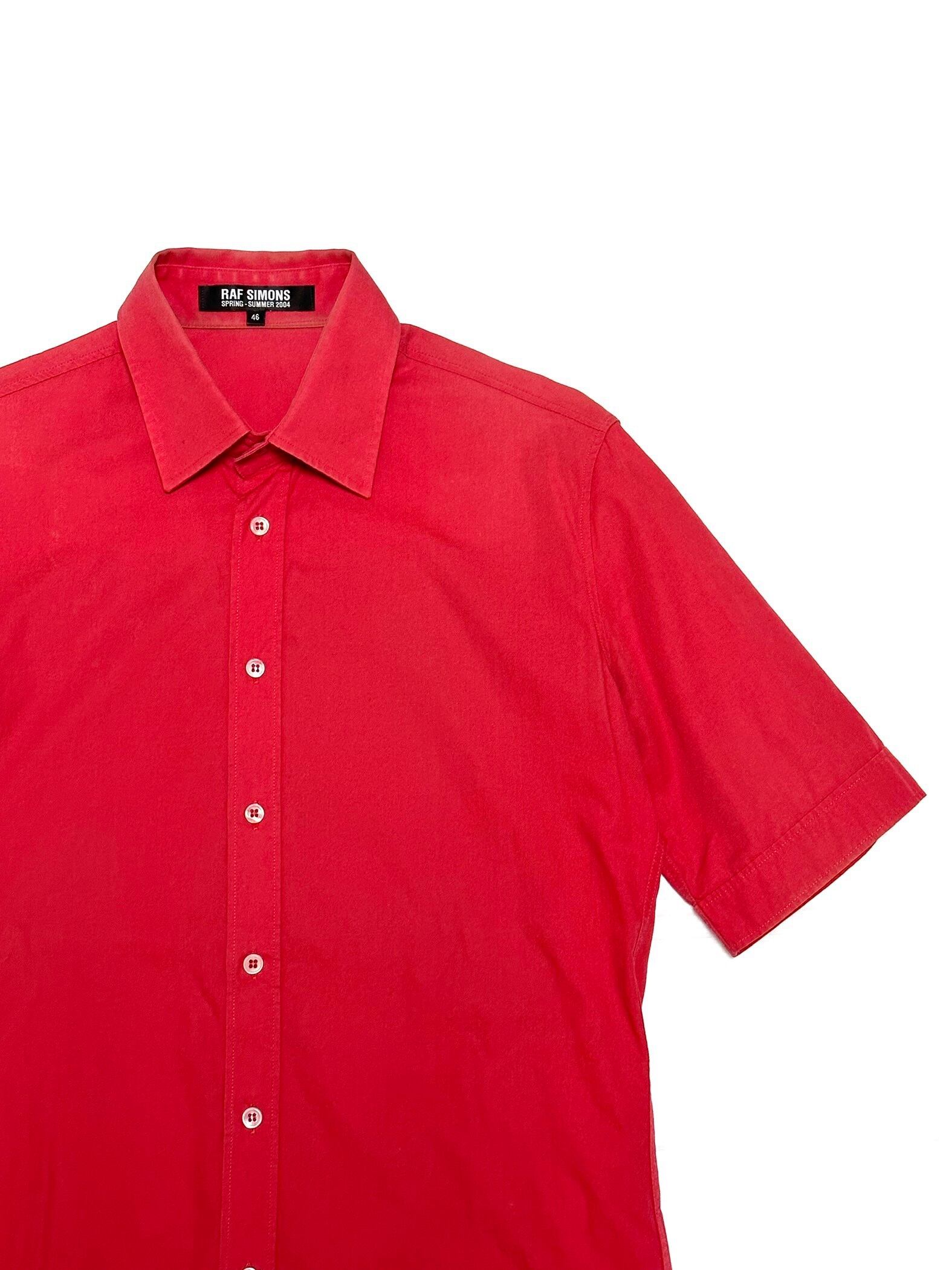 ラフシモンズを象徴する端正なレッドカラーシャツも、例外無く質素で飾りの無いノーマルなコットンブロード。