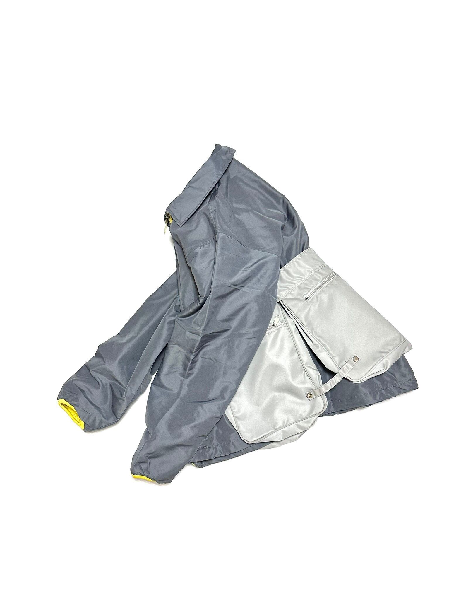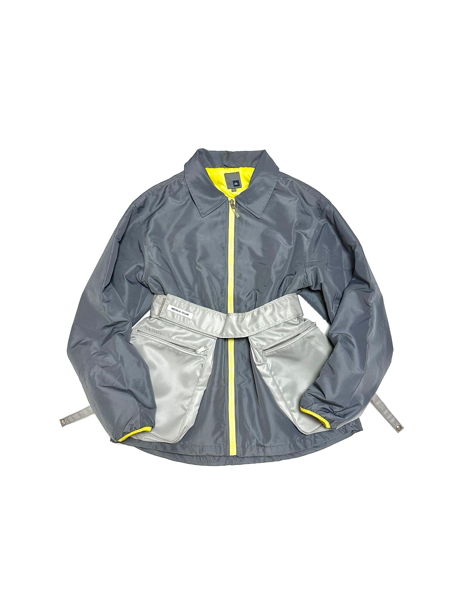ポリエステルのソフトシェルで仕立てられたユーティリティジャケット。