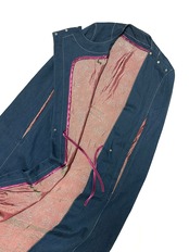そして、その打合せの前端に隠れたシームのスラッシュから腕を通しての着用となります。
