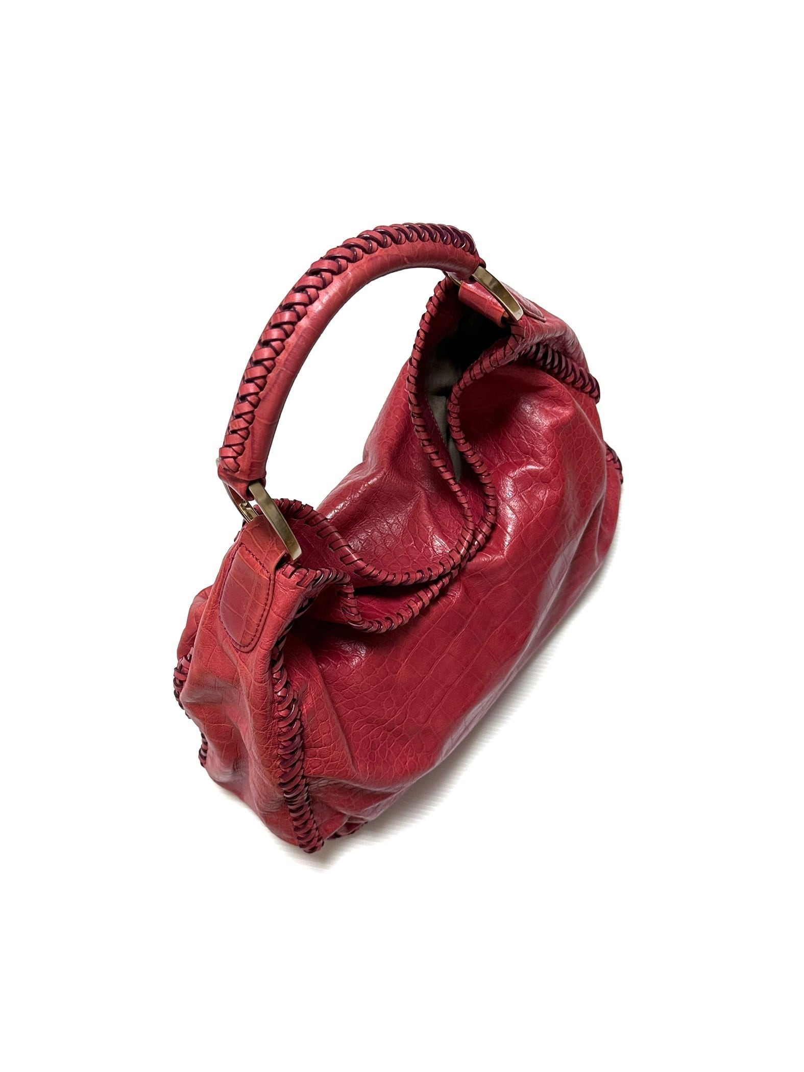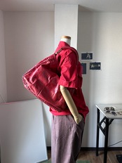 服のアームホール邪魔しない程度のハンドルレングスに、丁寧なレザーの編み込み。