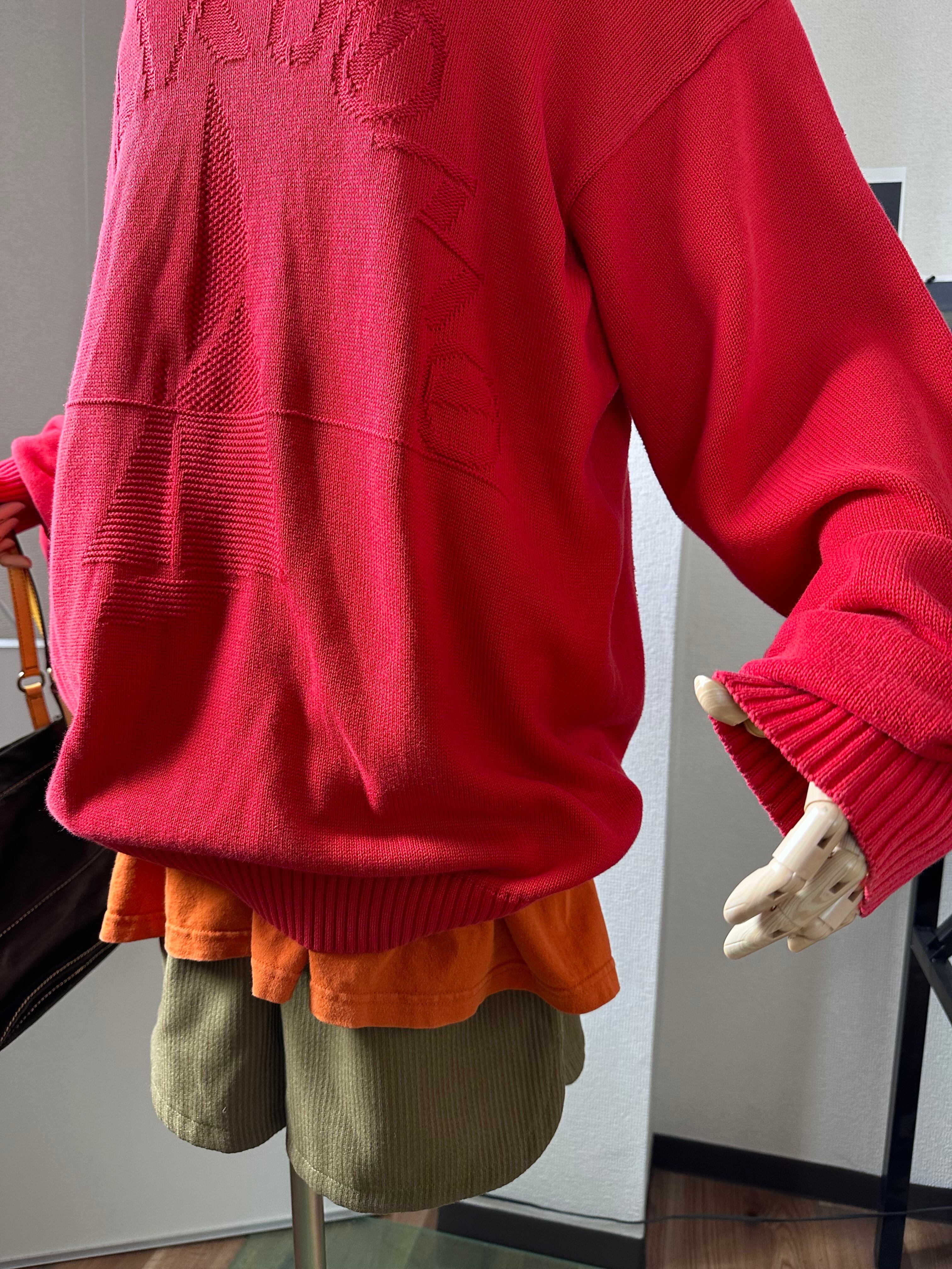 裾からオレンジチラリ覗かせて、色物のオーバーサイズレイヤードを攻略しましょう。