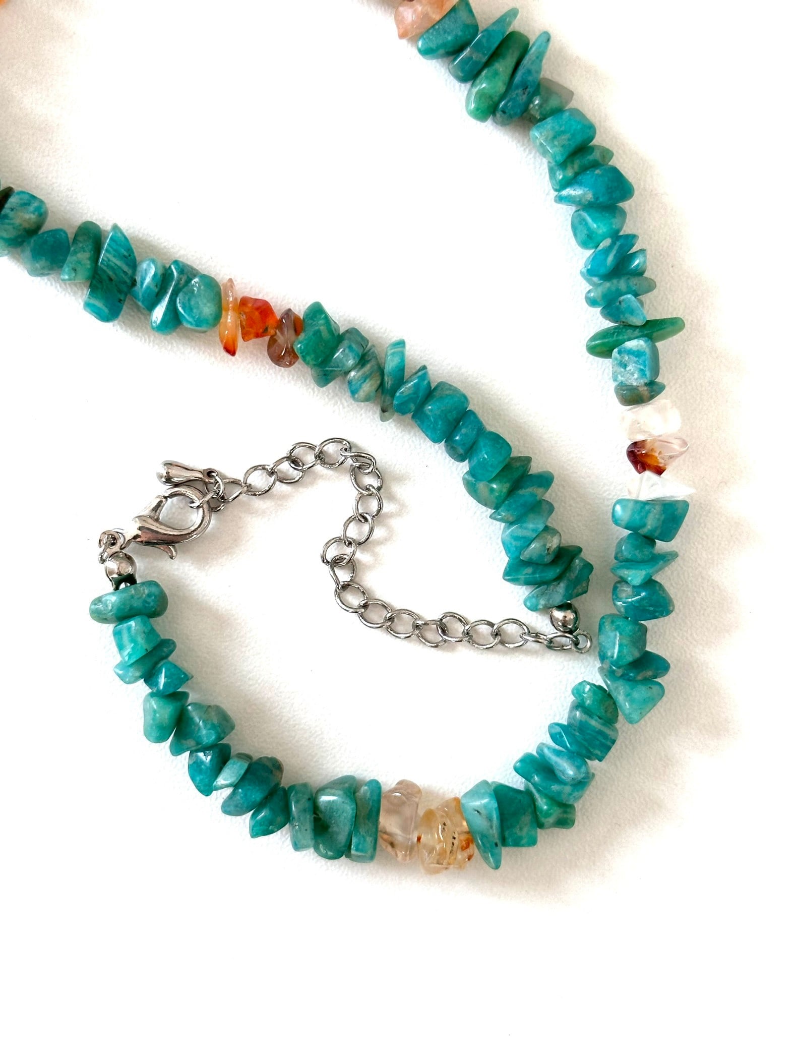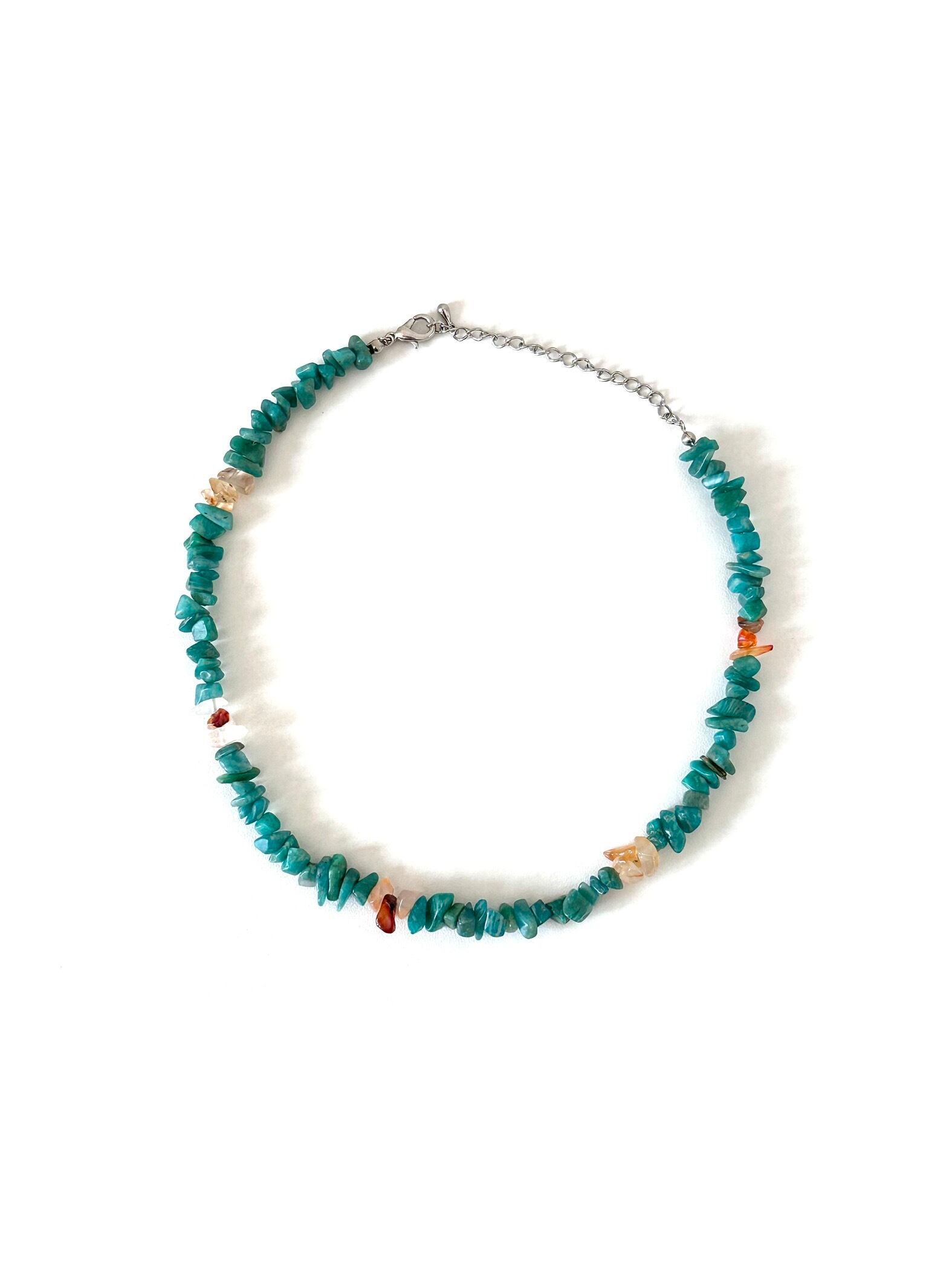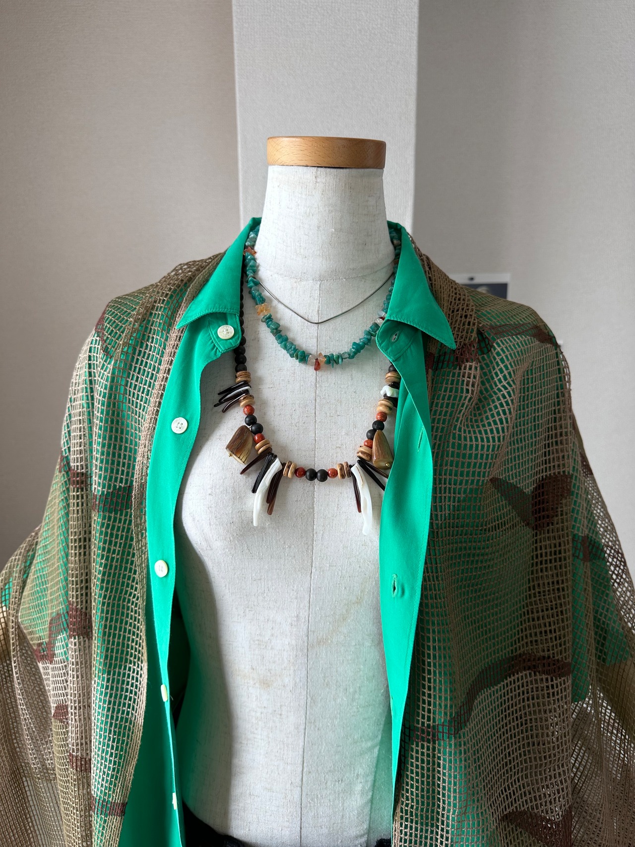 貴石の世界はあんまりに奥が深くって断言が出来ませんが、ピーコックグリーンの半透明石と、ノイズの入ったクリスタルのコンビデザイン。
