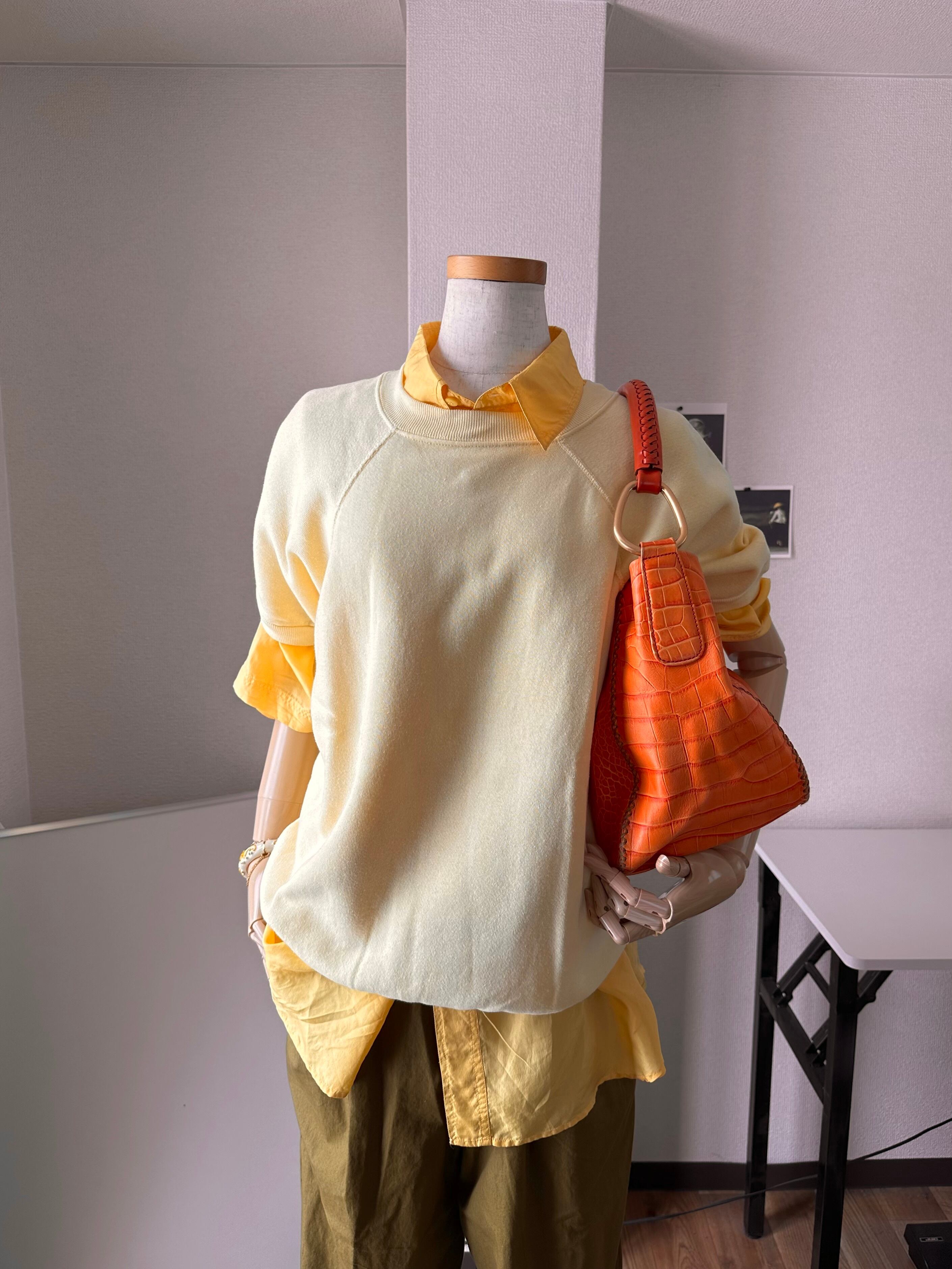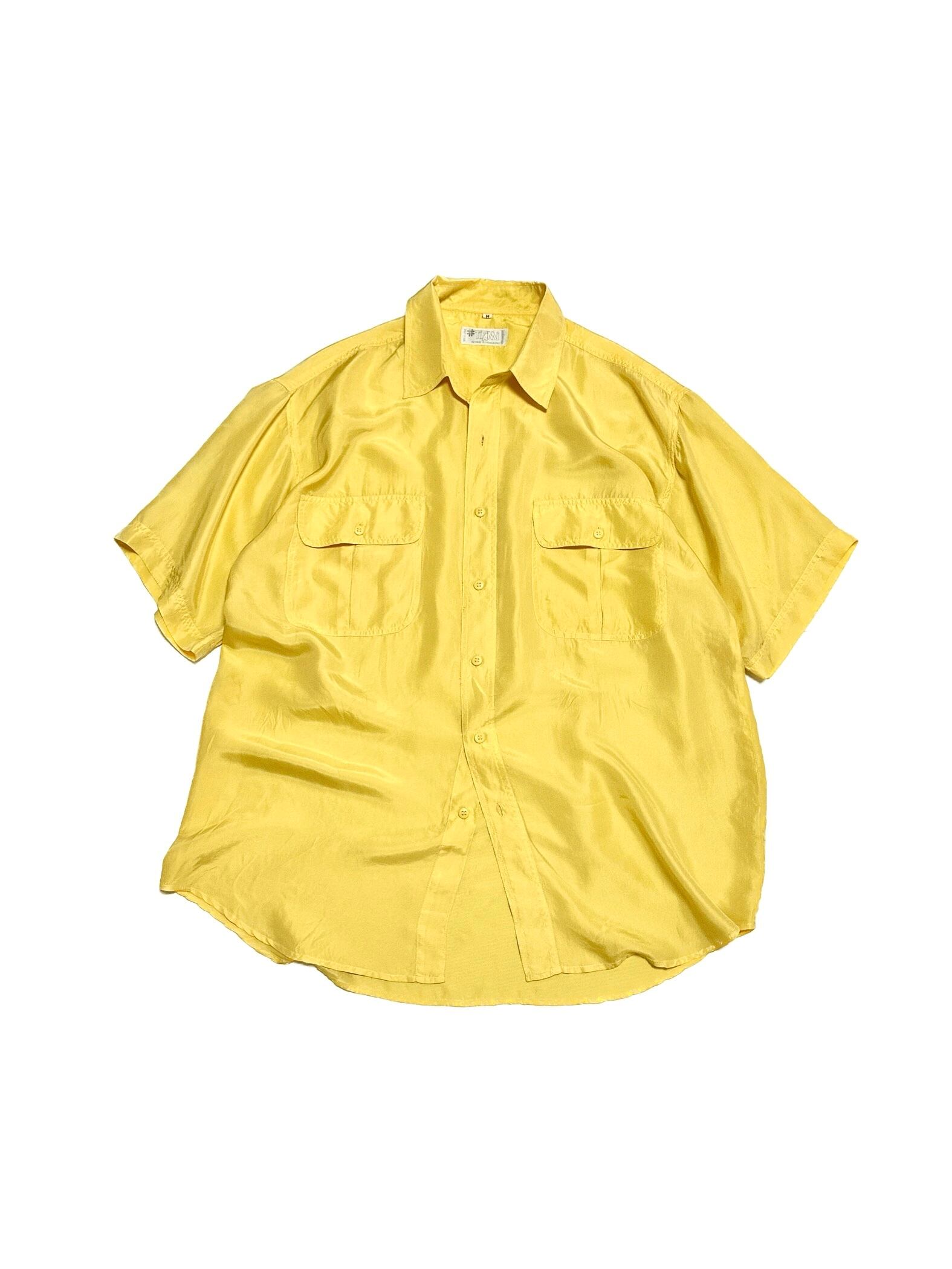 c80's ITALY VTG Pale-Yellow Silk Poplins Airy-Fit SH