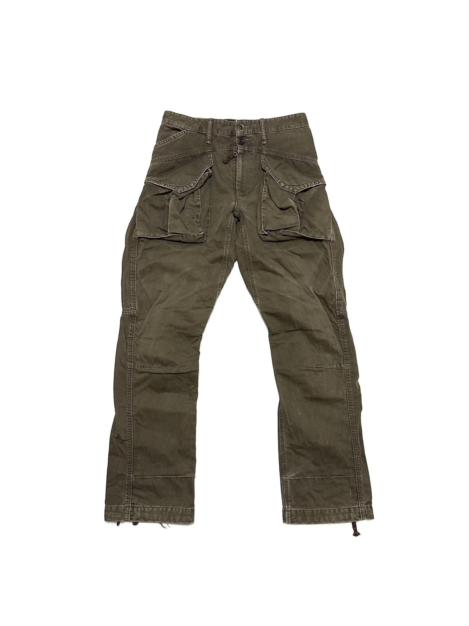 強めに着古したような退廃加工で仕上げられたユニークなコンバットパンツ。