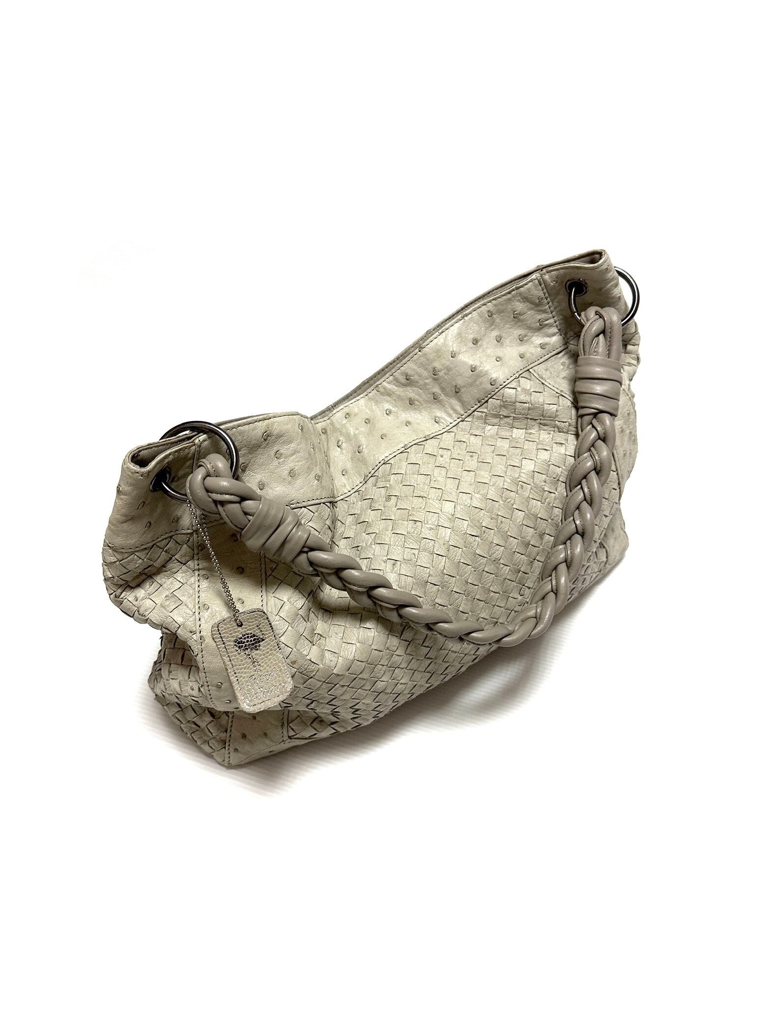 c00's Ash Color Ostrich-Intrecciato Leather Bag