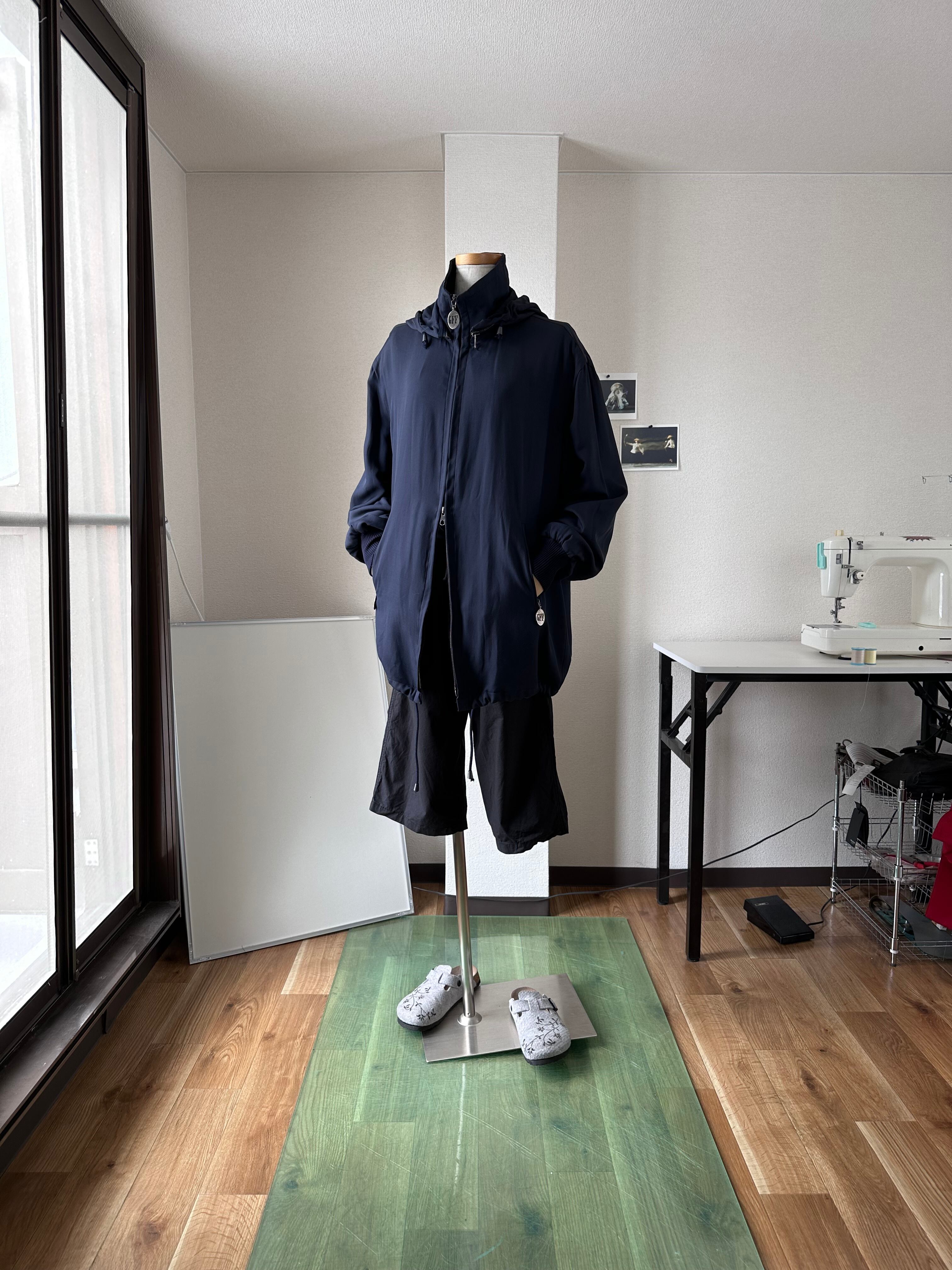 ユーロらしい円やかなミルキーネイビーが美しいフーデッドブルゾン。