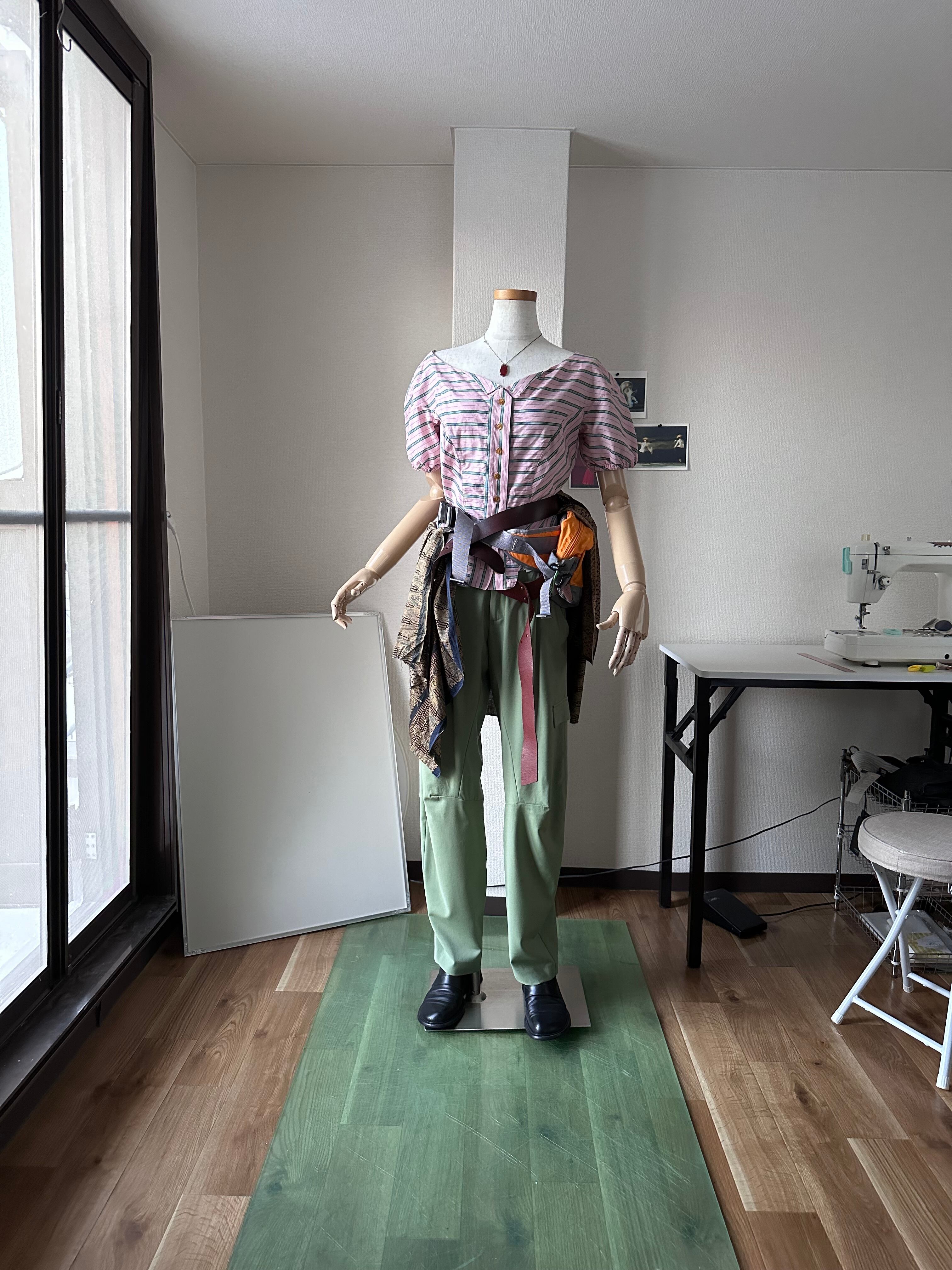 そしてそのサイドパートで生地を斜めに傾けてのバイアスカット。