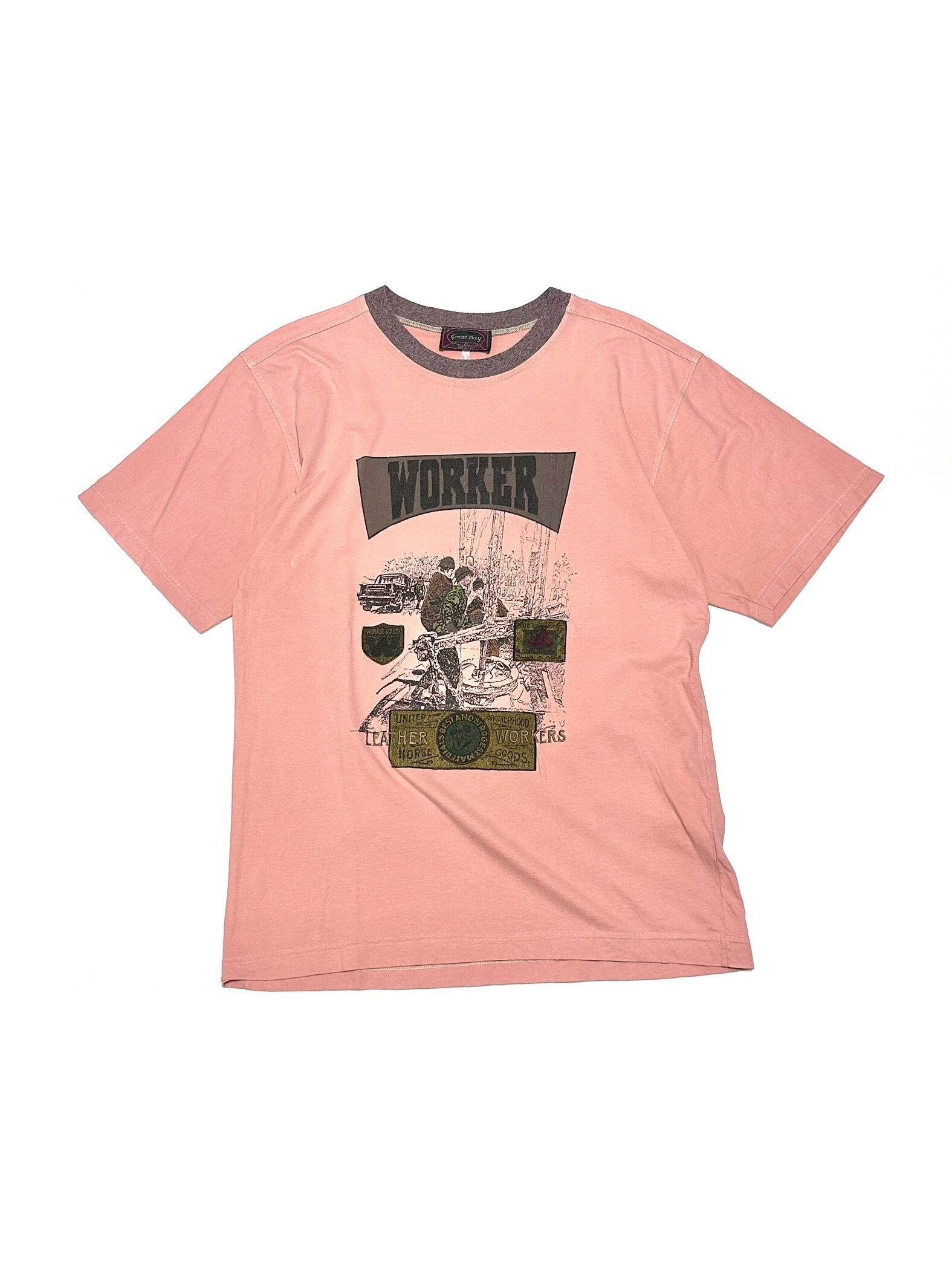 c80's GREAT BAY Workers Graphic Design Worn_Out Salmon_Pink Tee