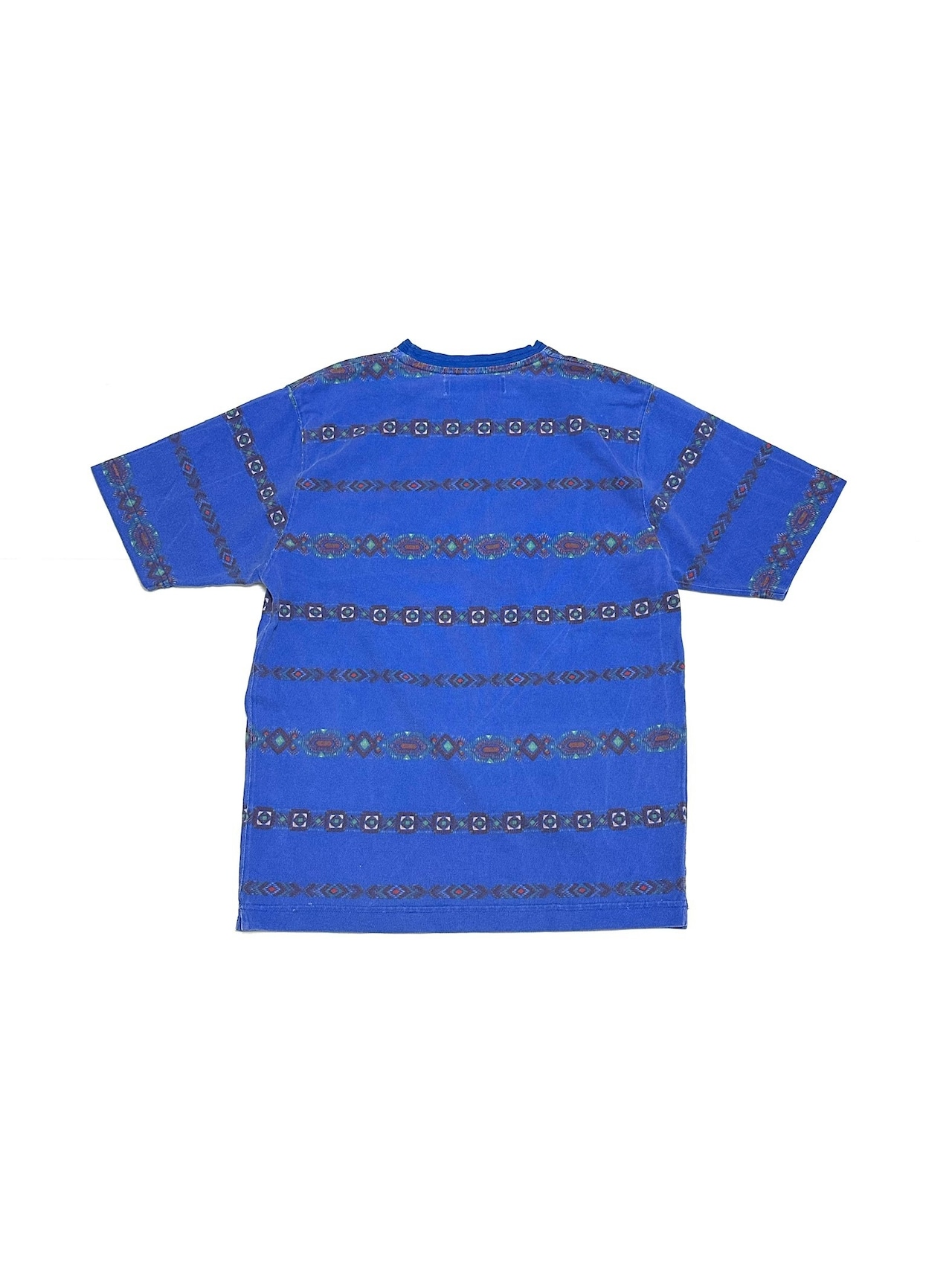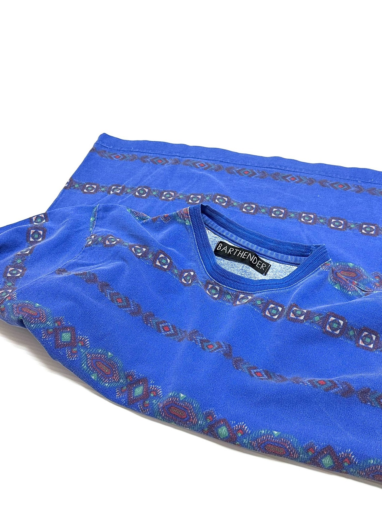c80's ITALY VTG Ethnic Graphics Border Design Blue Kanoko C/S