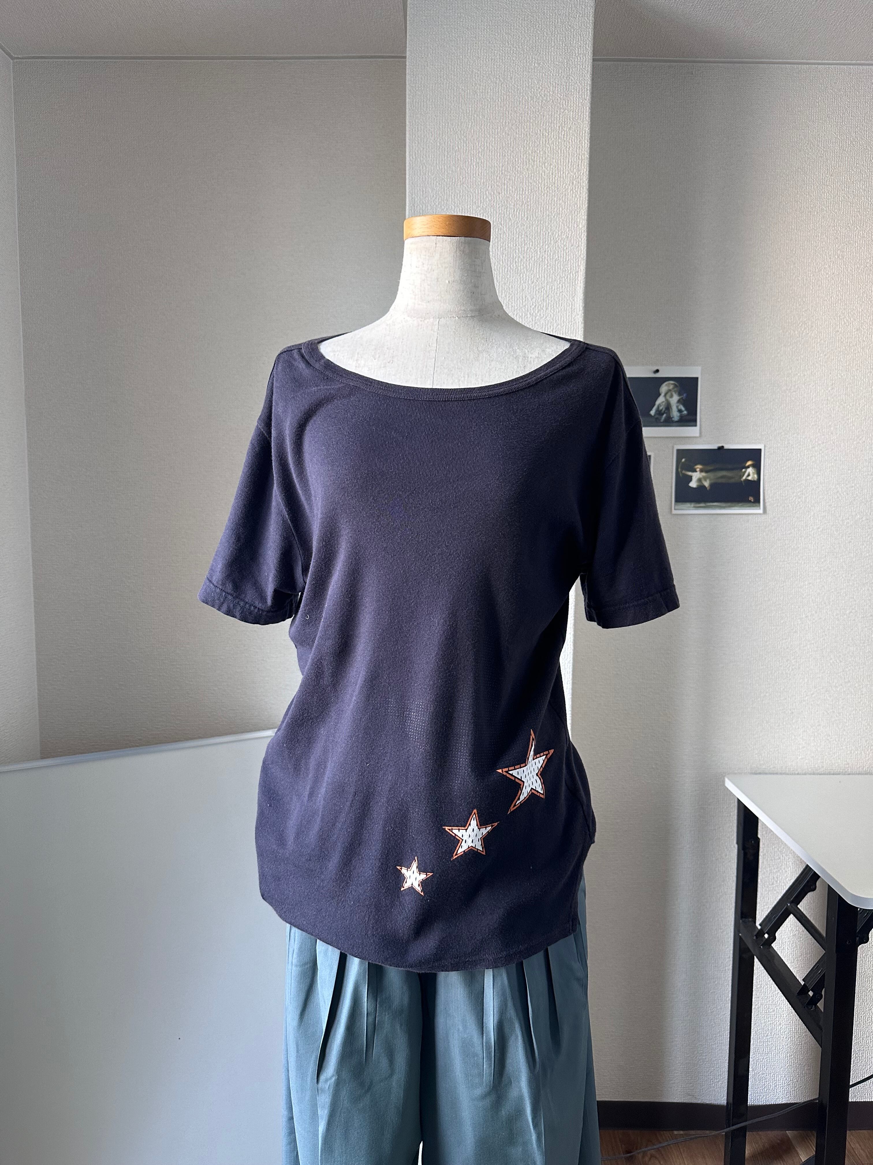 やや広めのデコルテ、肩線にゴツく重ねられたバインダーテープ、ヘムラインのサイドレイヤー等々、普通にプリント抜きに見ても程良く気の利いた良いTシャツでしょう。