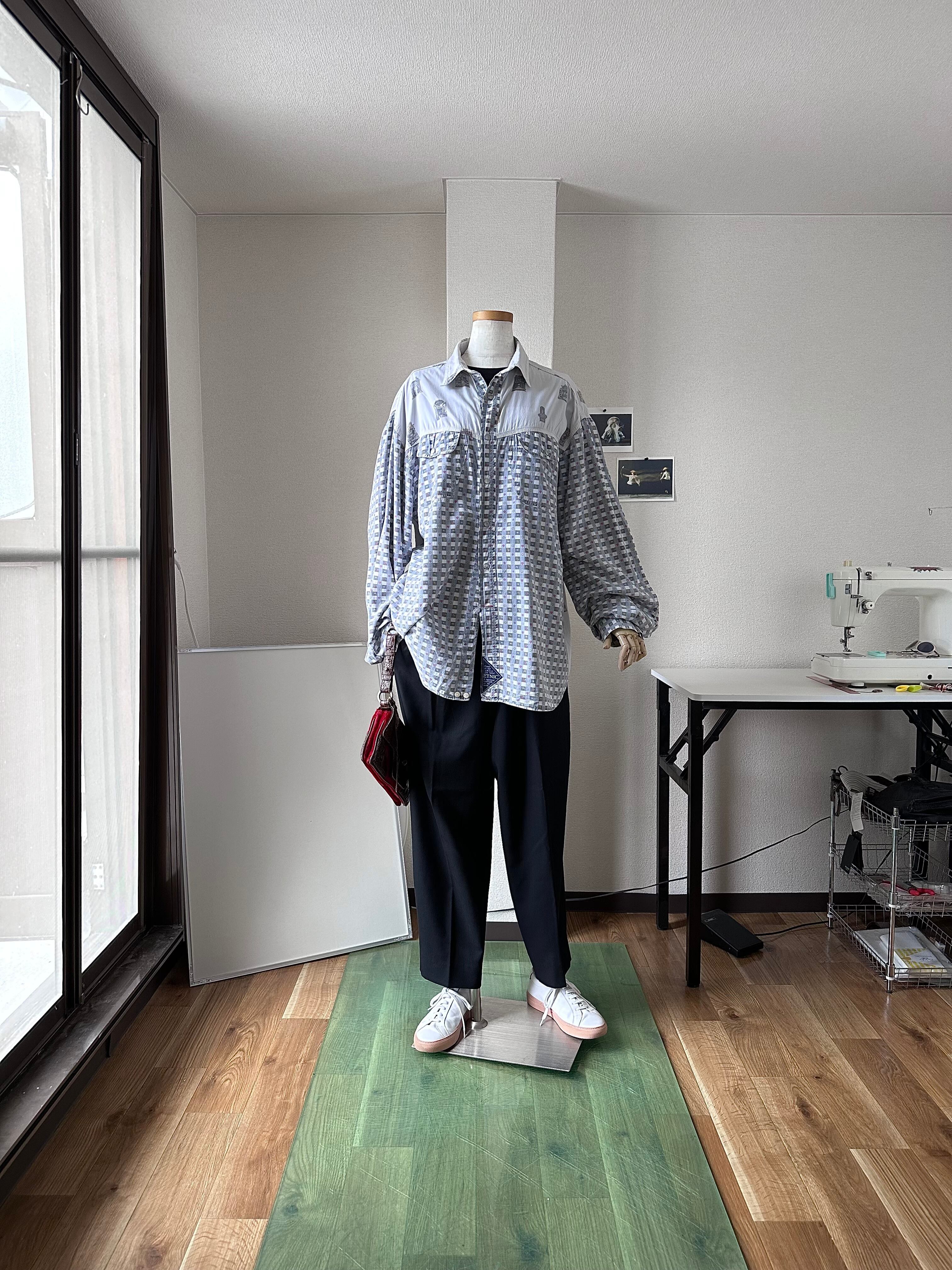 ウエスタンシャツを土台に据え、楽観的な総柄で置き換え。