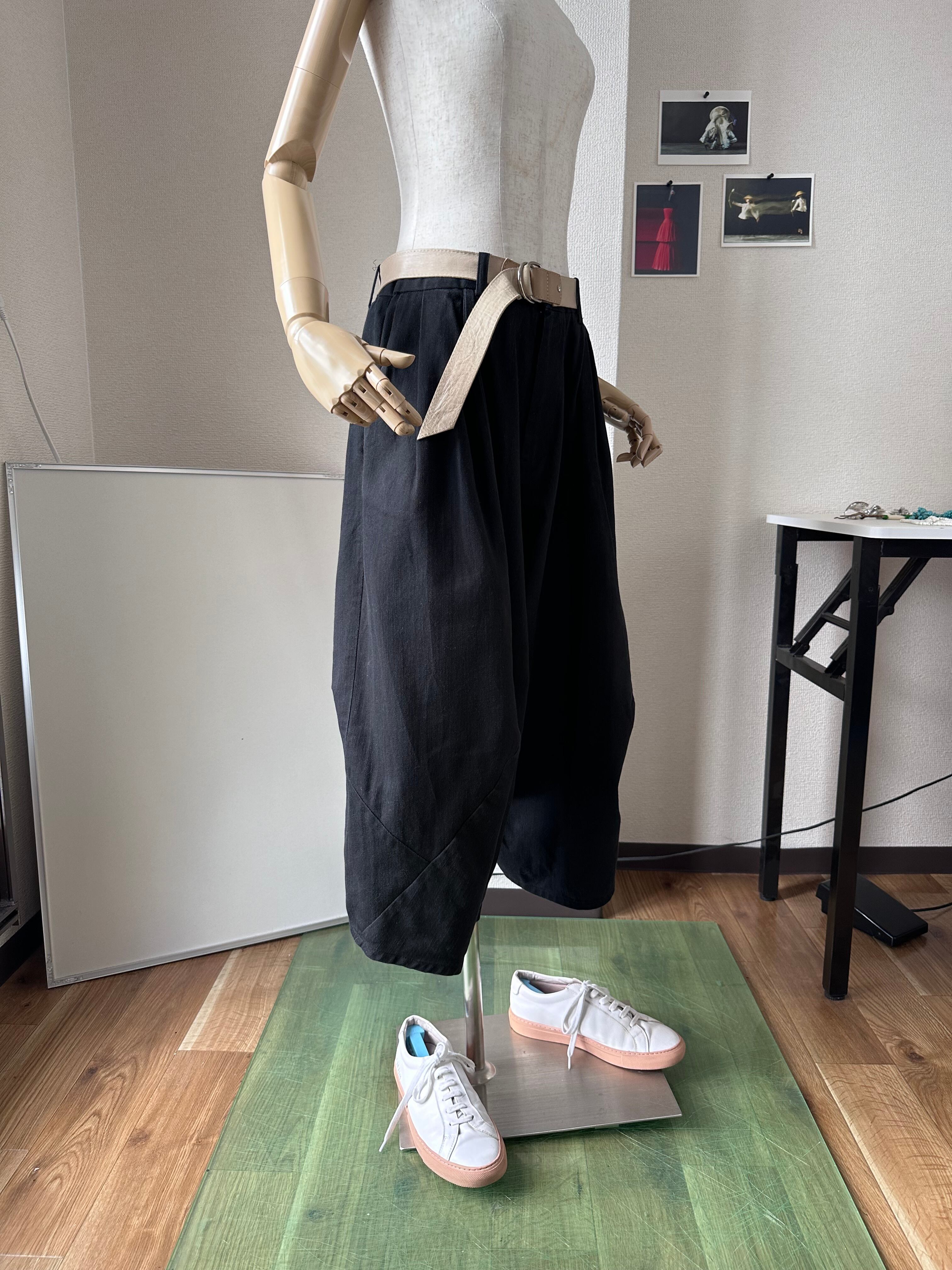 黒って色を恨むほどに、素晴らしく秀逸なカッティングワークで組まれたワイドパンツ。