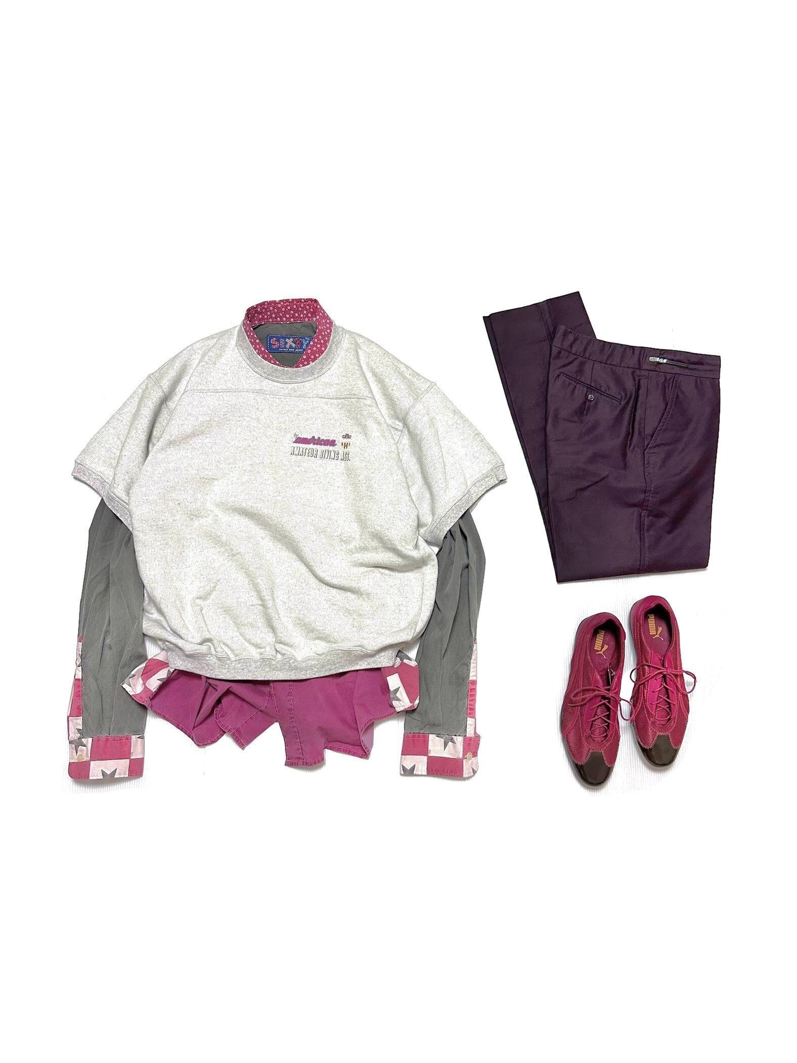 ゆるっと一枚で派手に浮世離れを決め込んでも良いですが、是非同時代のスウェットシャツやレトロブルゾンとの高相性を体感していただきたい。