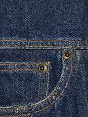 トラッカージャケットの胸ポケットを、ジーンズの腰ポケットで置換したデザイン。