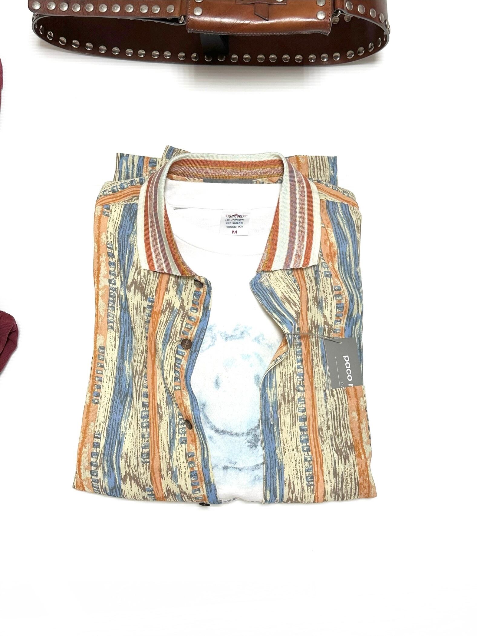 c90's PACO RABANNE (Lic.) Abstract_Stripe Pattern Polo_Like SH