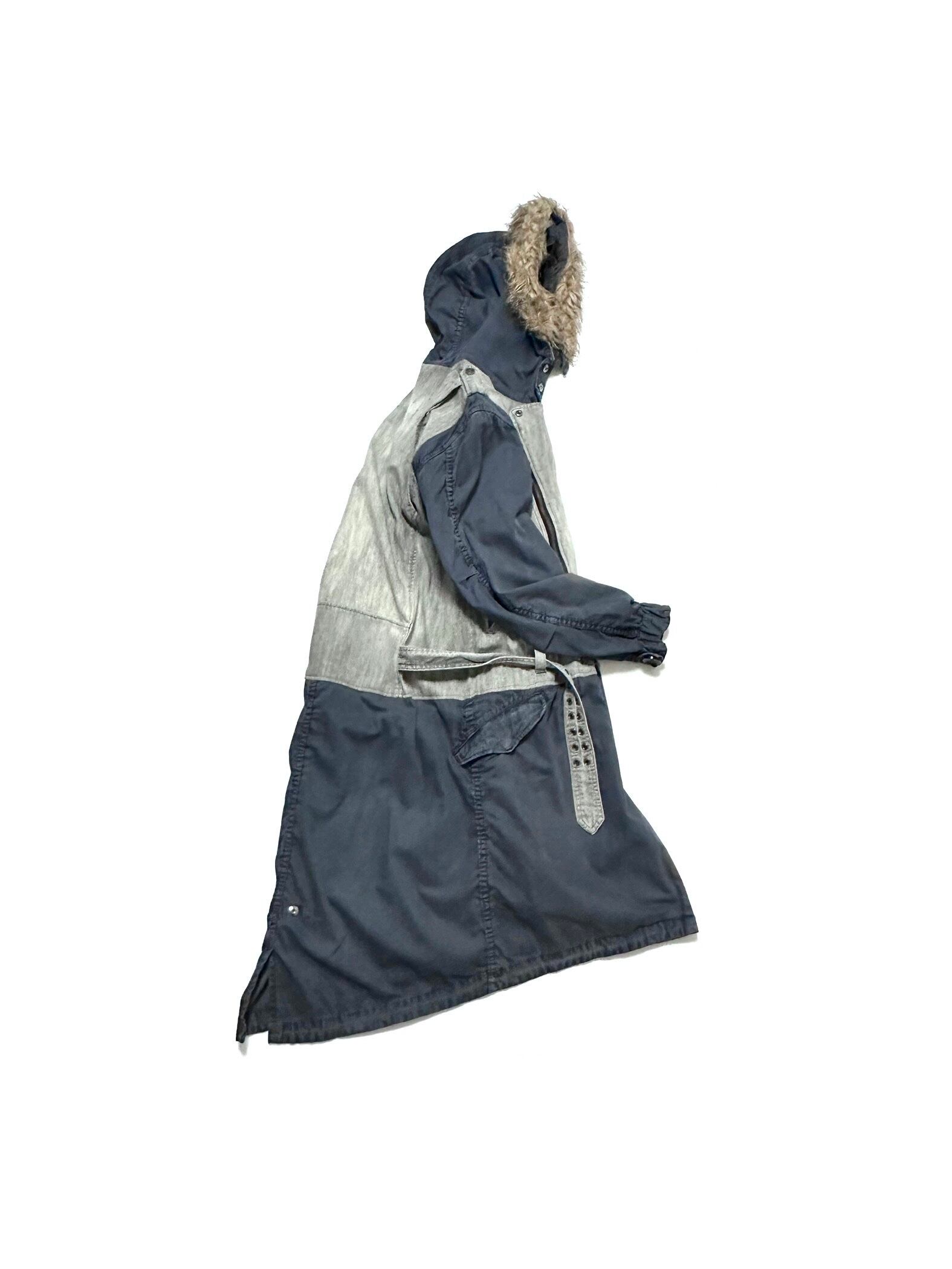 モッズコートにダブルブレストのライダースジャケットを表面的にドッキングしたようなデザイン。