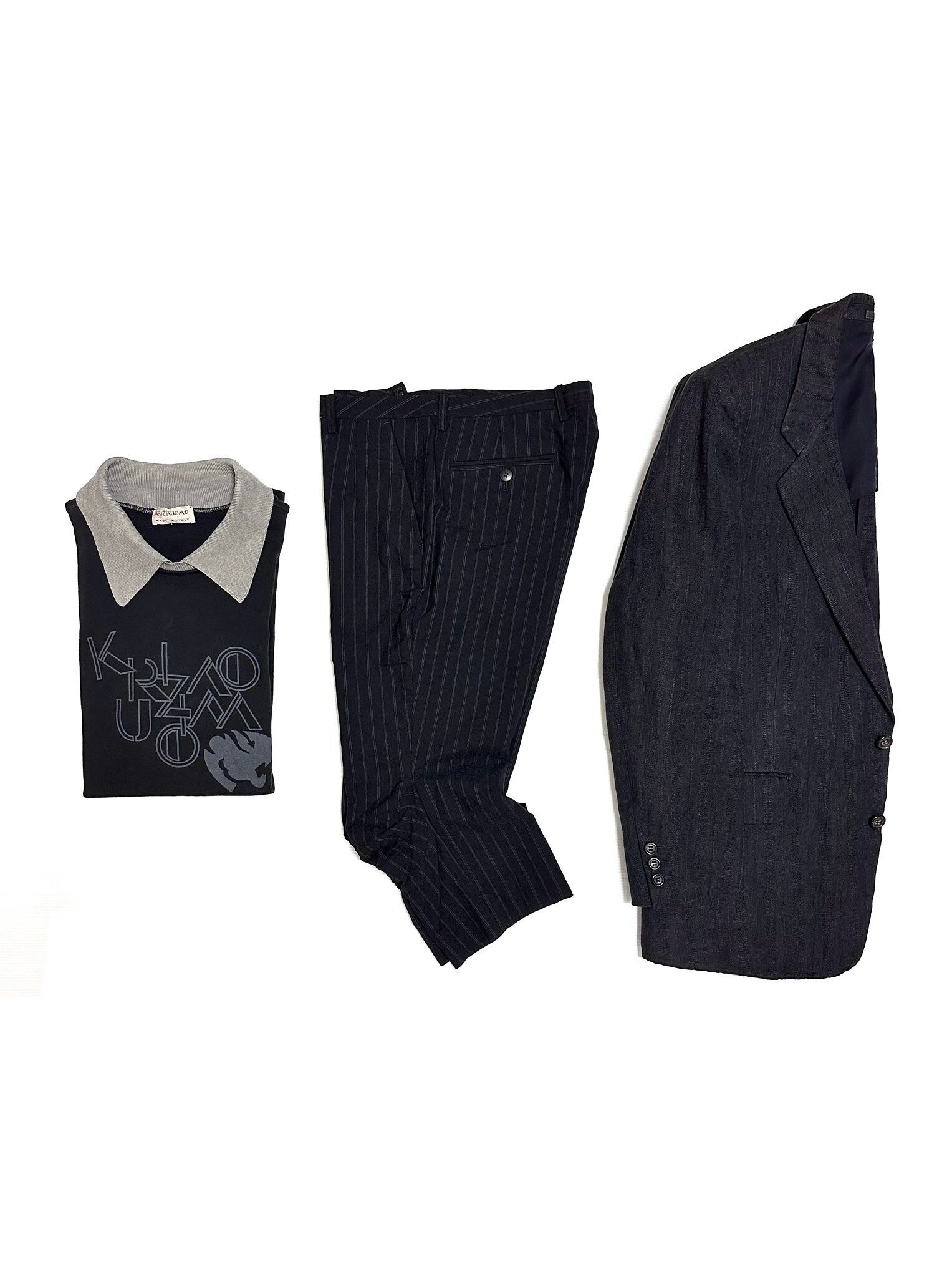c90's KRIZIA UOMO Knit Collar Layered Design Tee