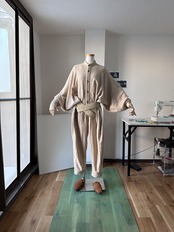 革が皮であった工程を想起させるという意味で、これは洋服の脱構築を伴わない類稀なるアトリエテイスト。