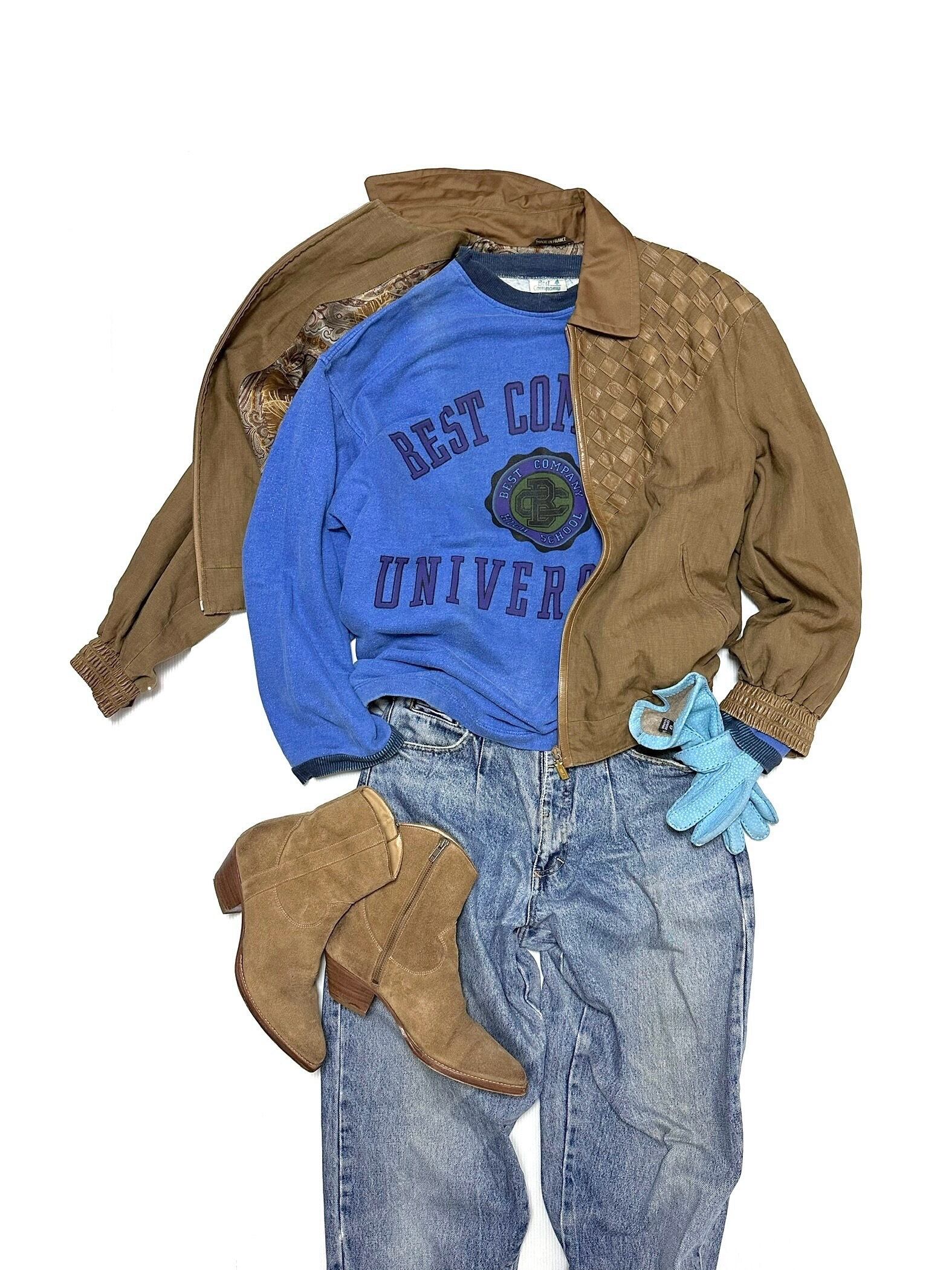 鮮やかな水色のピッグスエードと、裏地は全部ふわふわのカシミヤニット。