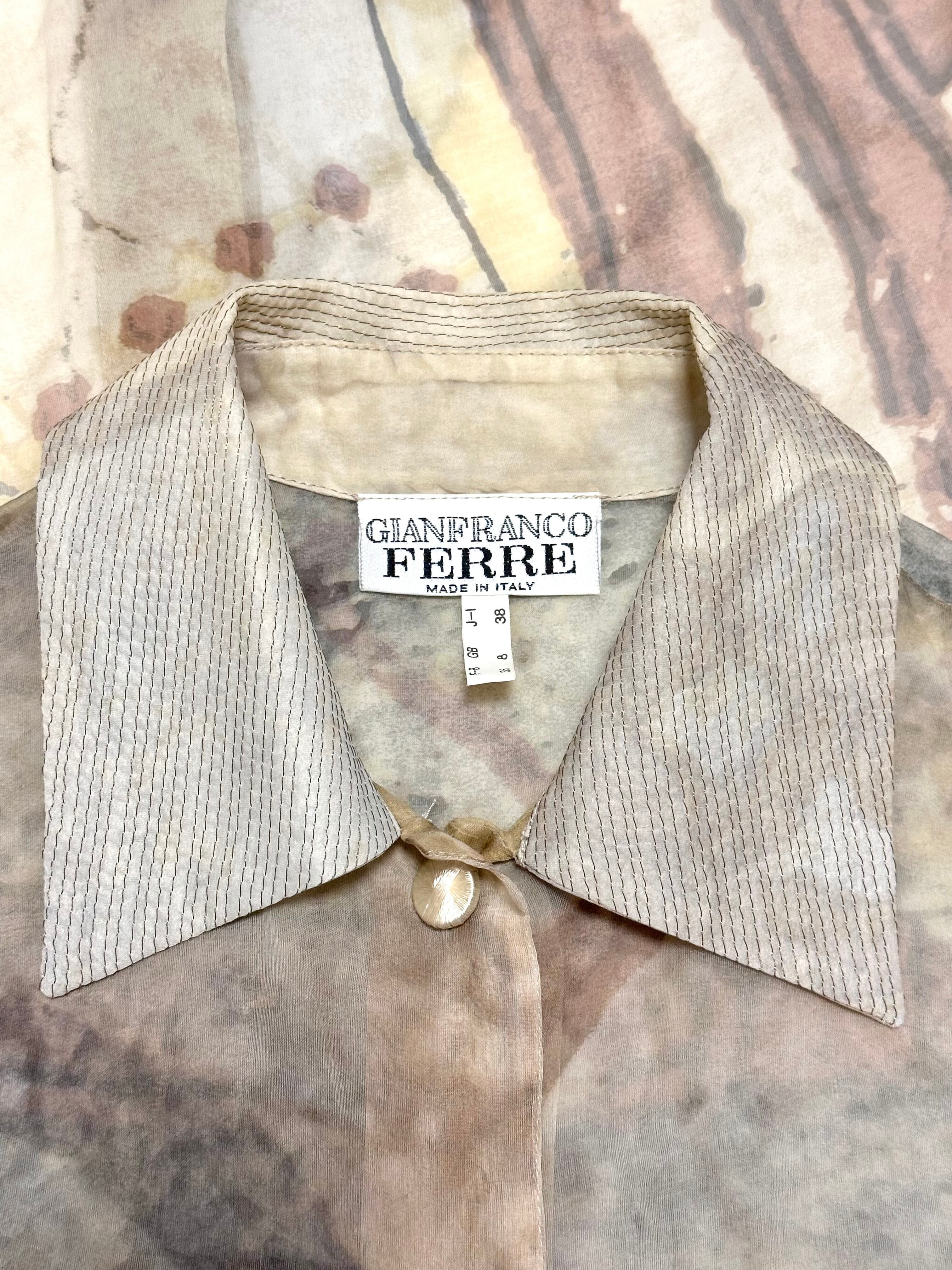90's GIANFRANCO FERRE Ukiyoe_Printed Sheer Silk Over_Shirt