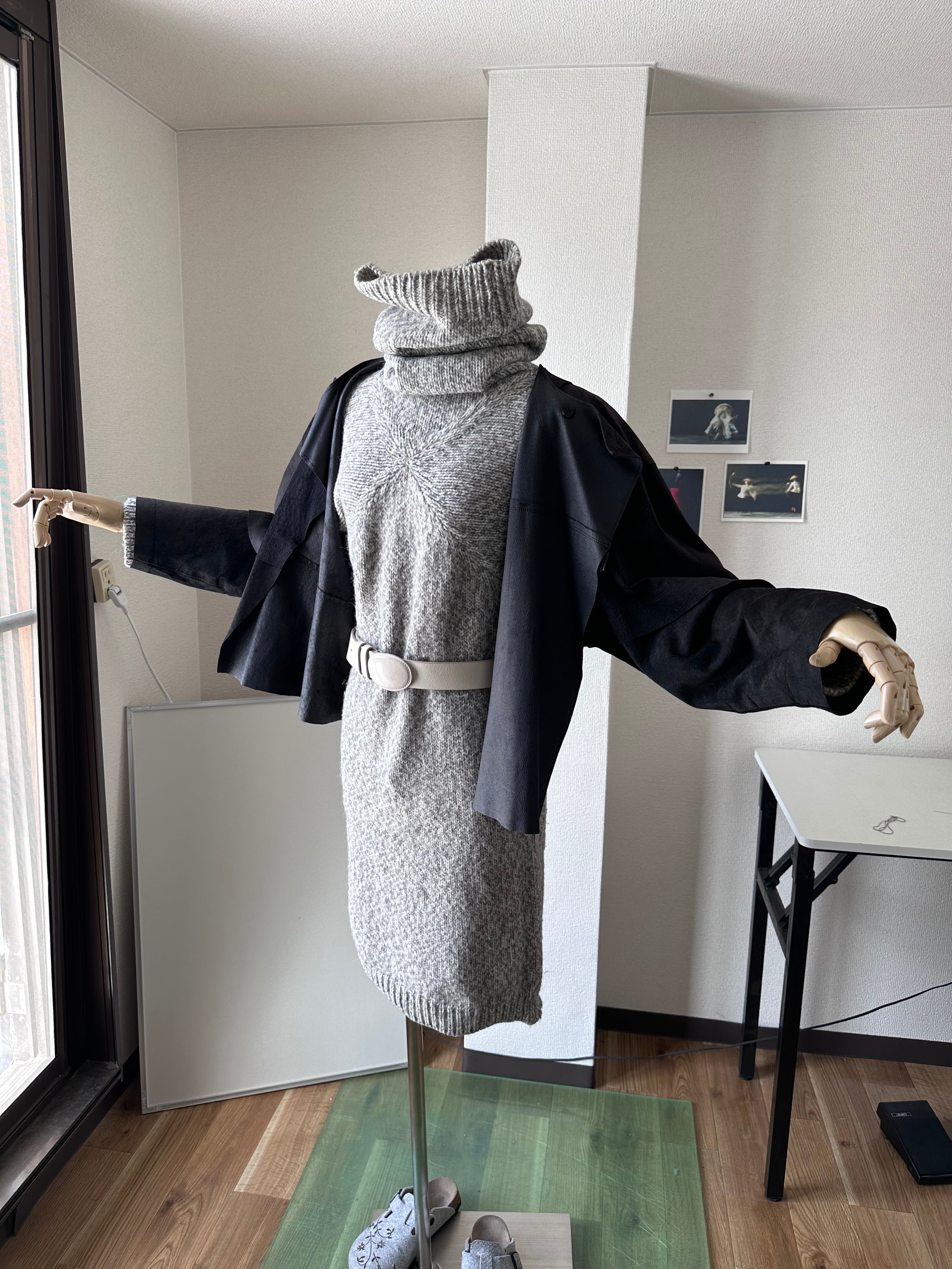 無造作に切りっぱなしの革を継ぎ接いだ構成はVIVIENNEのバッファローコートみたいな空気もありますね。