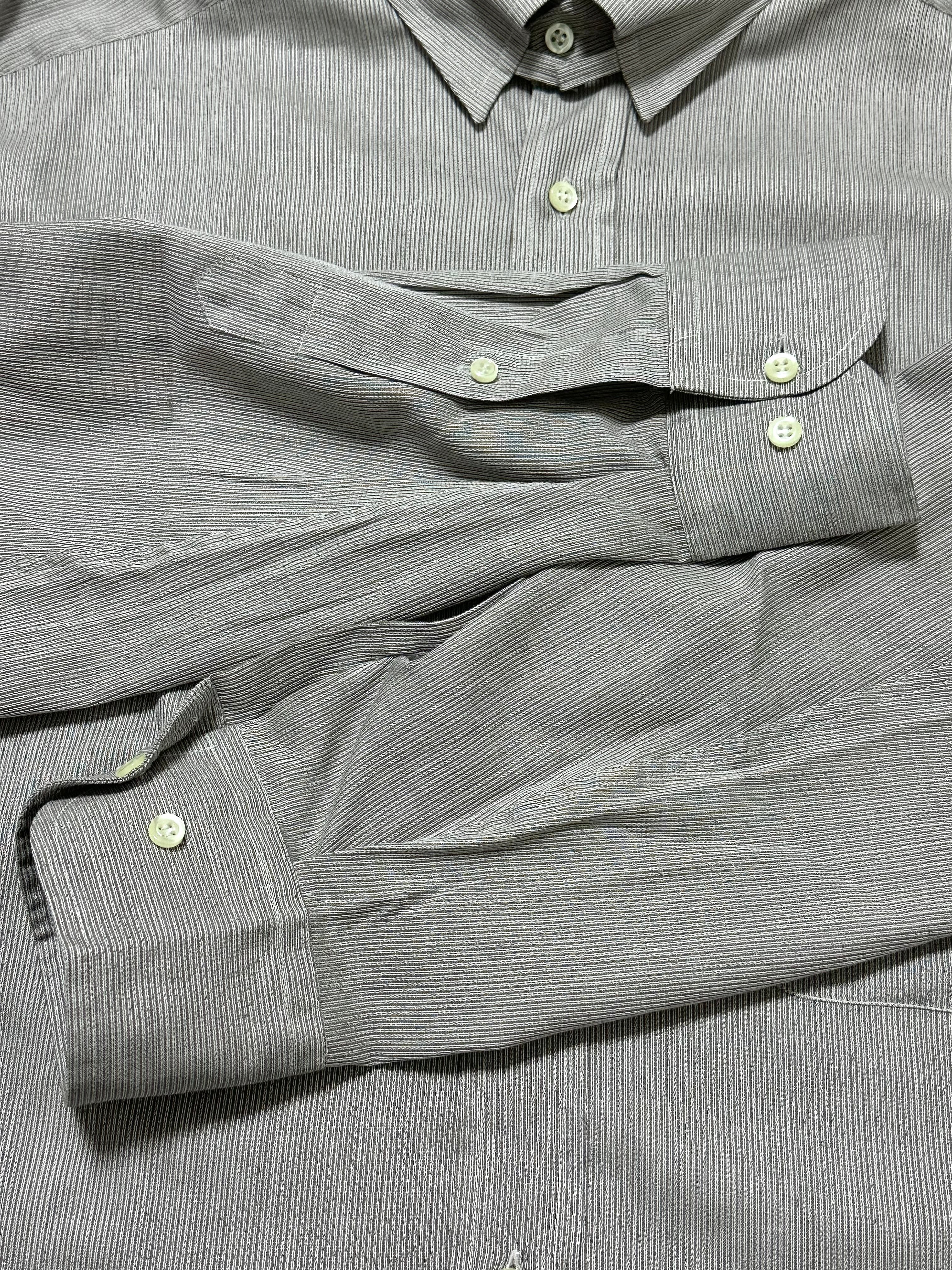 細かいピッチでミドルグレーに成ったクラシックなシャツ。