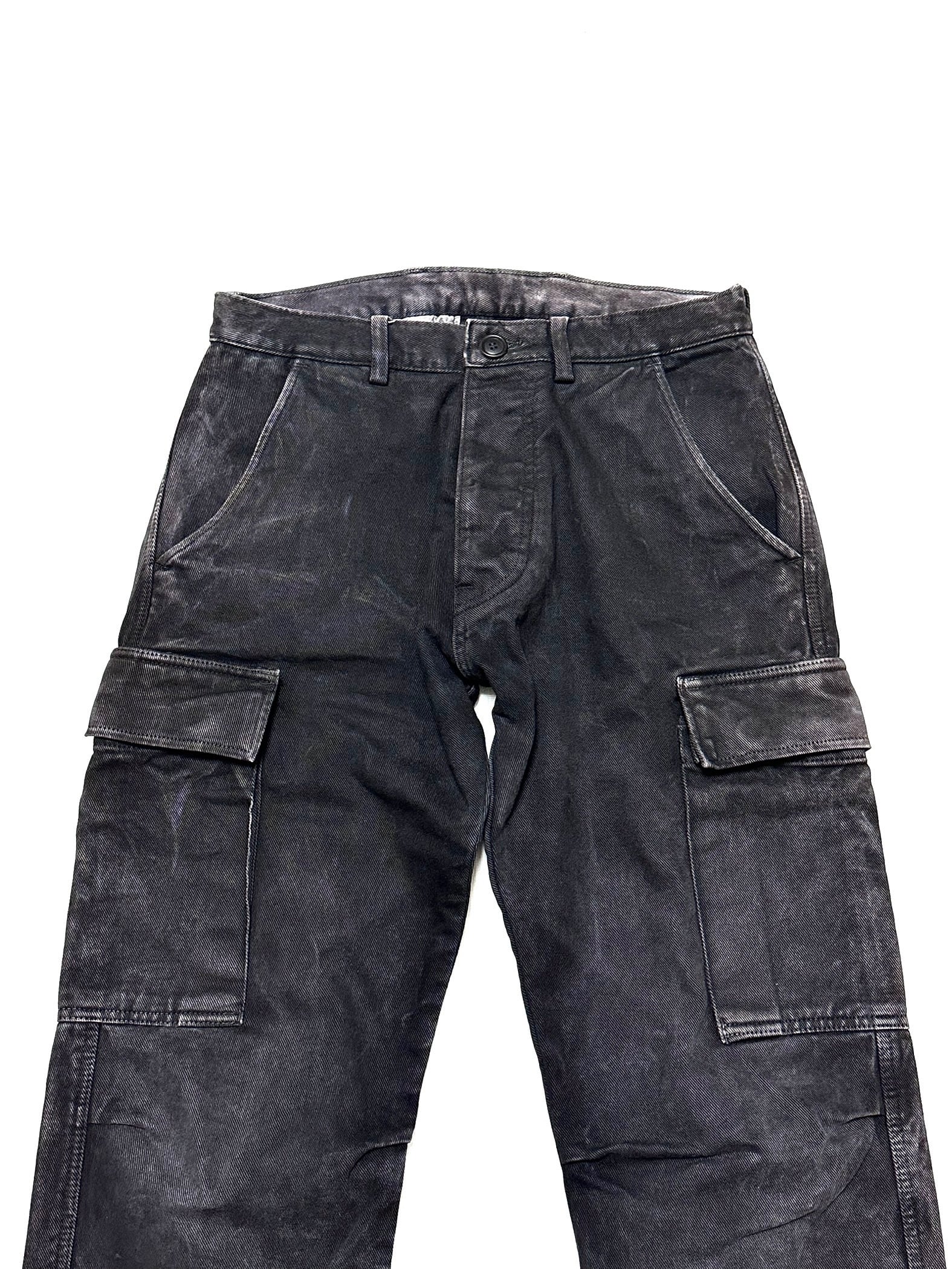 かなりラギッドに使い古されたハードなモールスキンのカーゴパンツ。