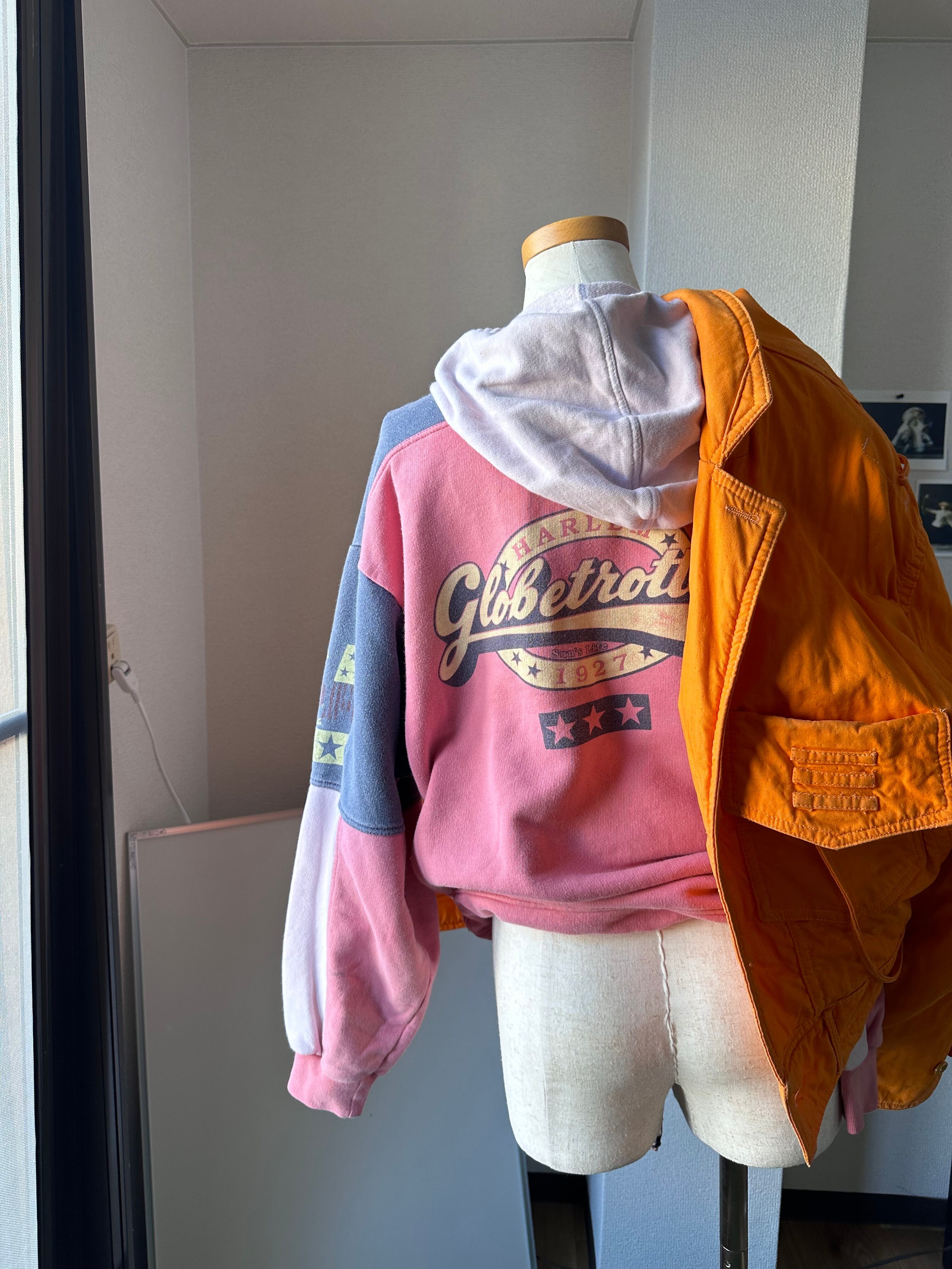 80-90's SUN'S LIFE Baby-Pink×Milky-Navy Switched Hoodie