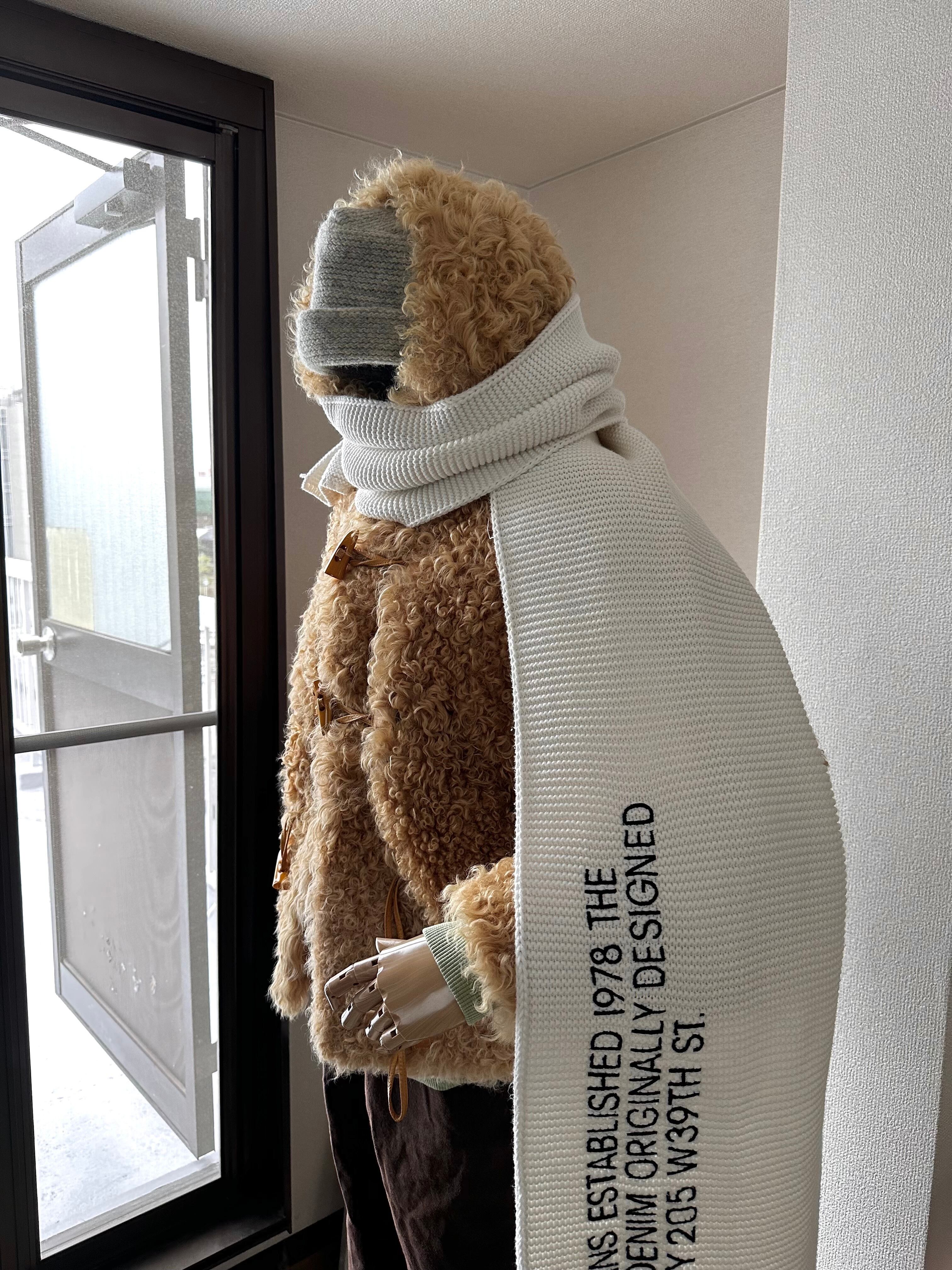 しかしこの長くてボリューミーなマフラーにテキストを刺繍で入れるアプローチ、やはりカッコ良い。