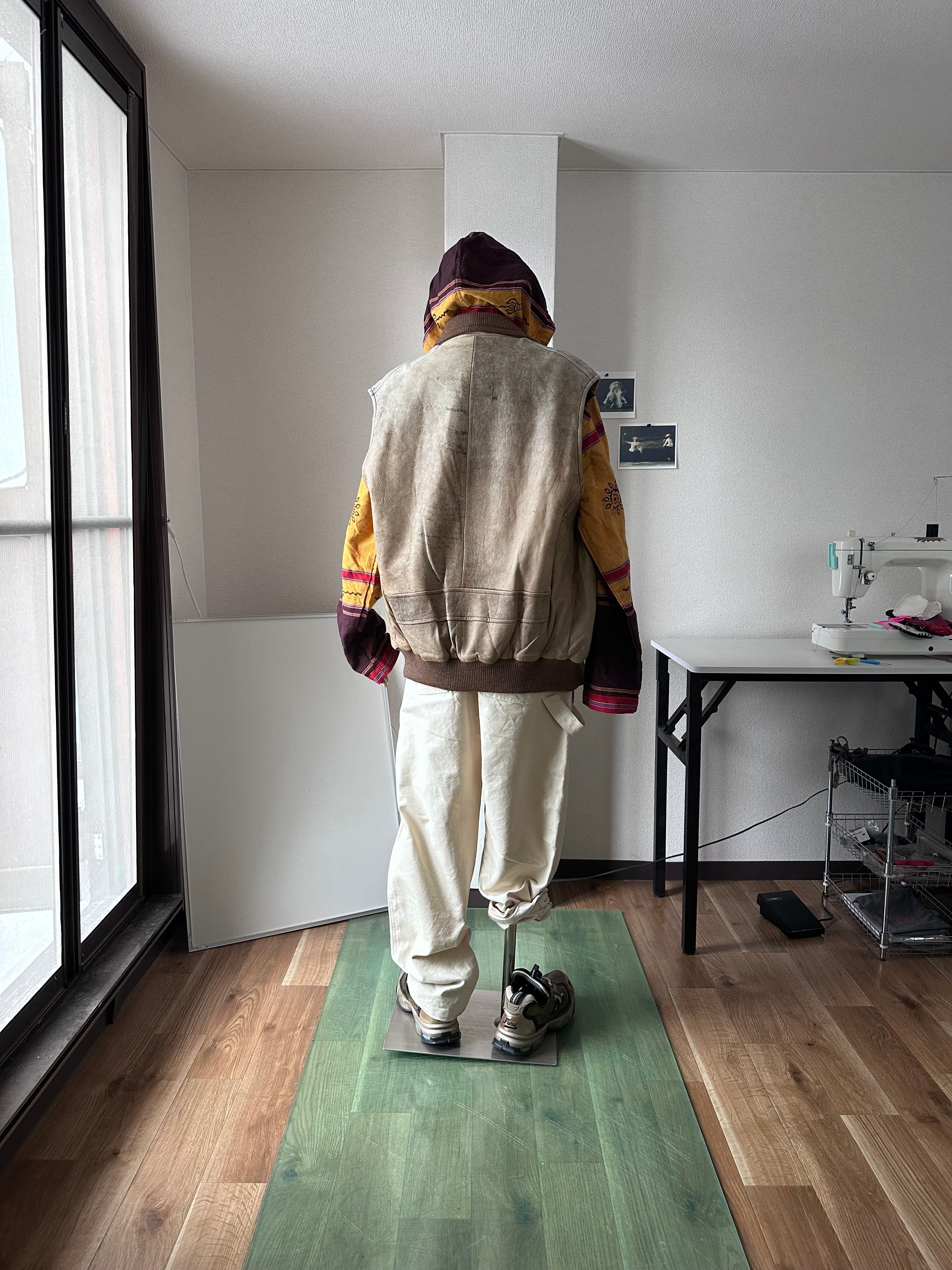 今年いよいよ本腰を入れて現代風に再構築している80年代のユーロカジュアル、そこに重ねるアウターとして最高のポジショニング。