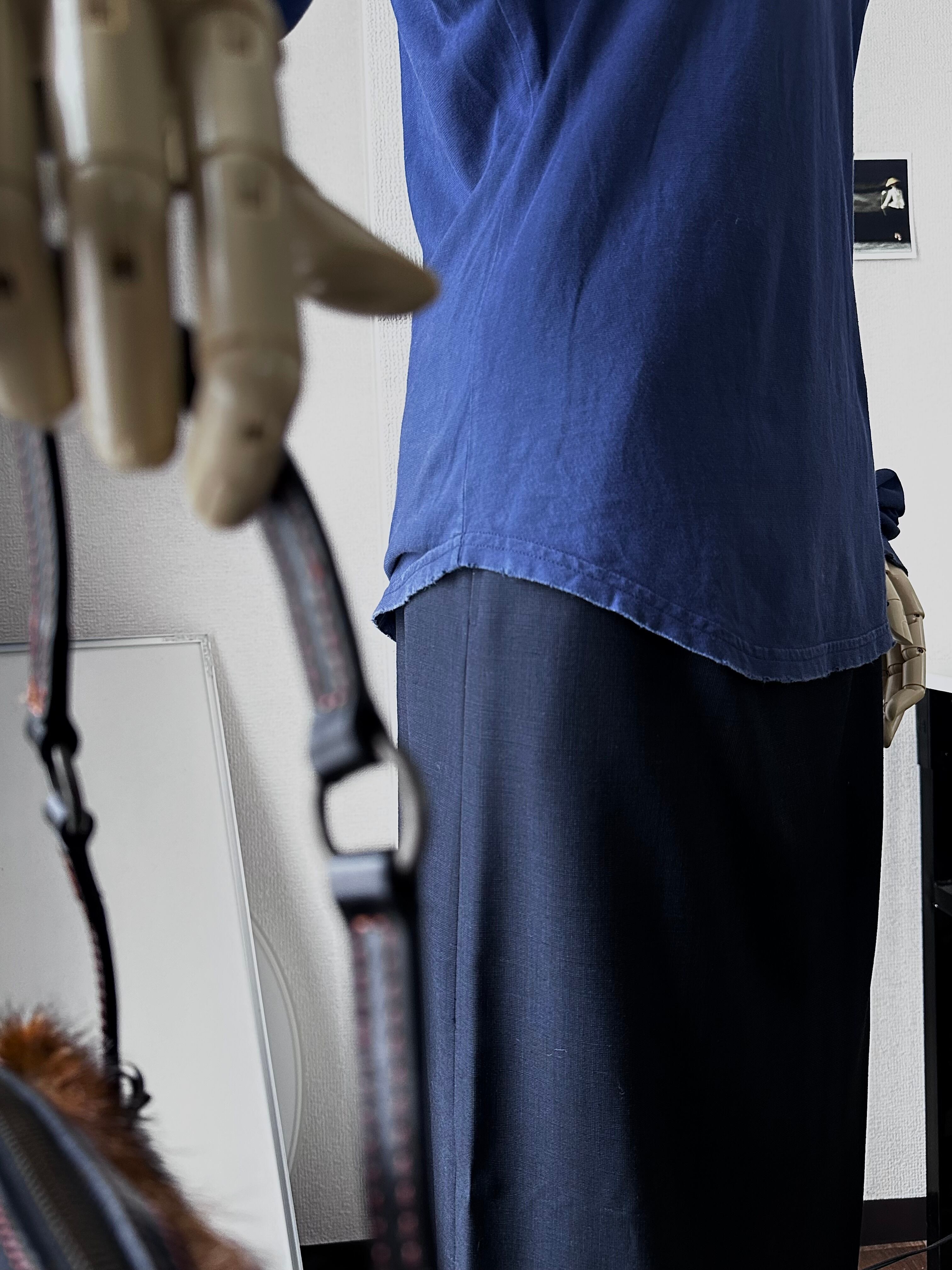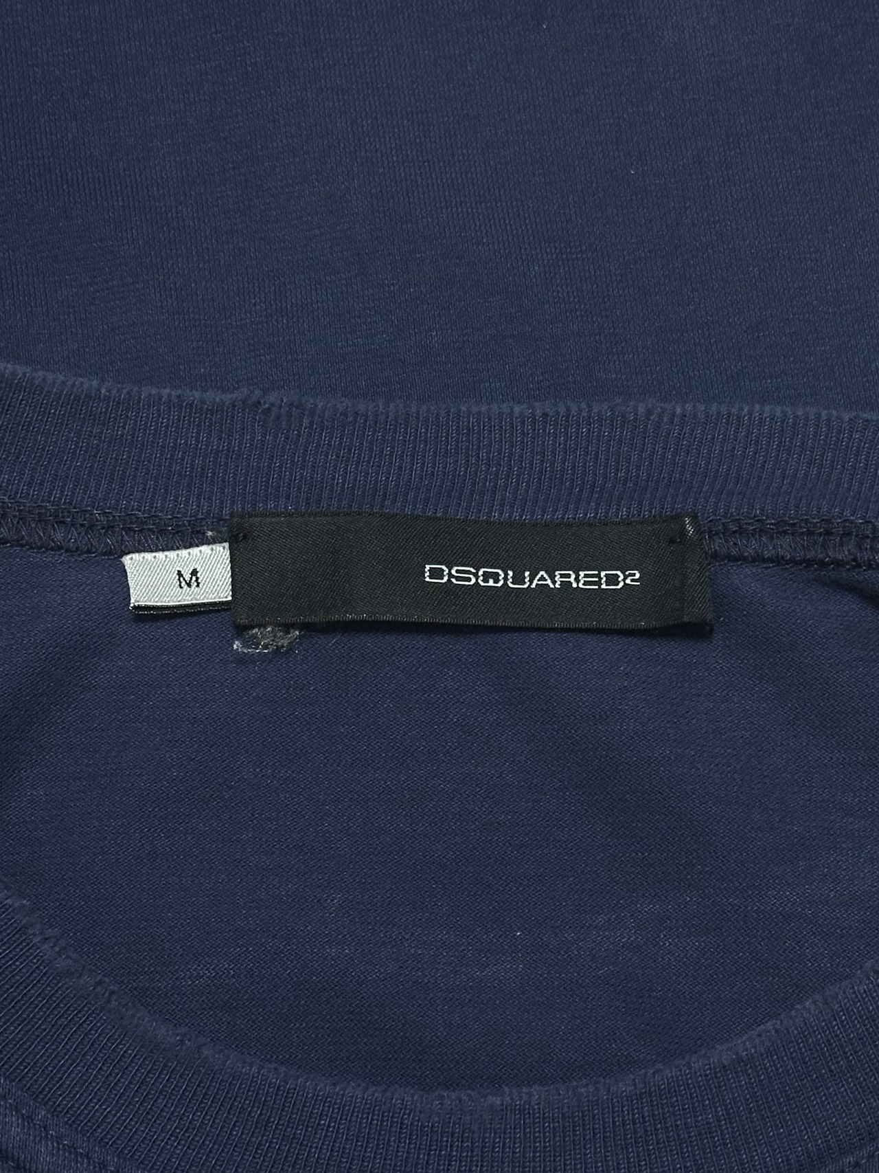 裾やネックラインのダメージ加工に紛れて、実際の着用ダメージも散見されます。