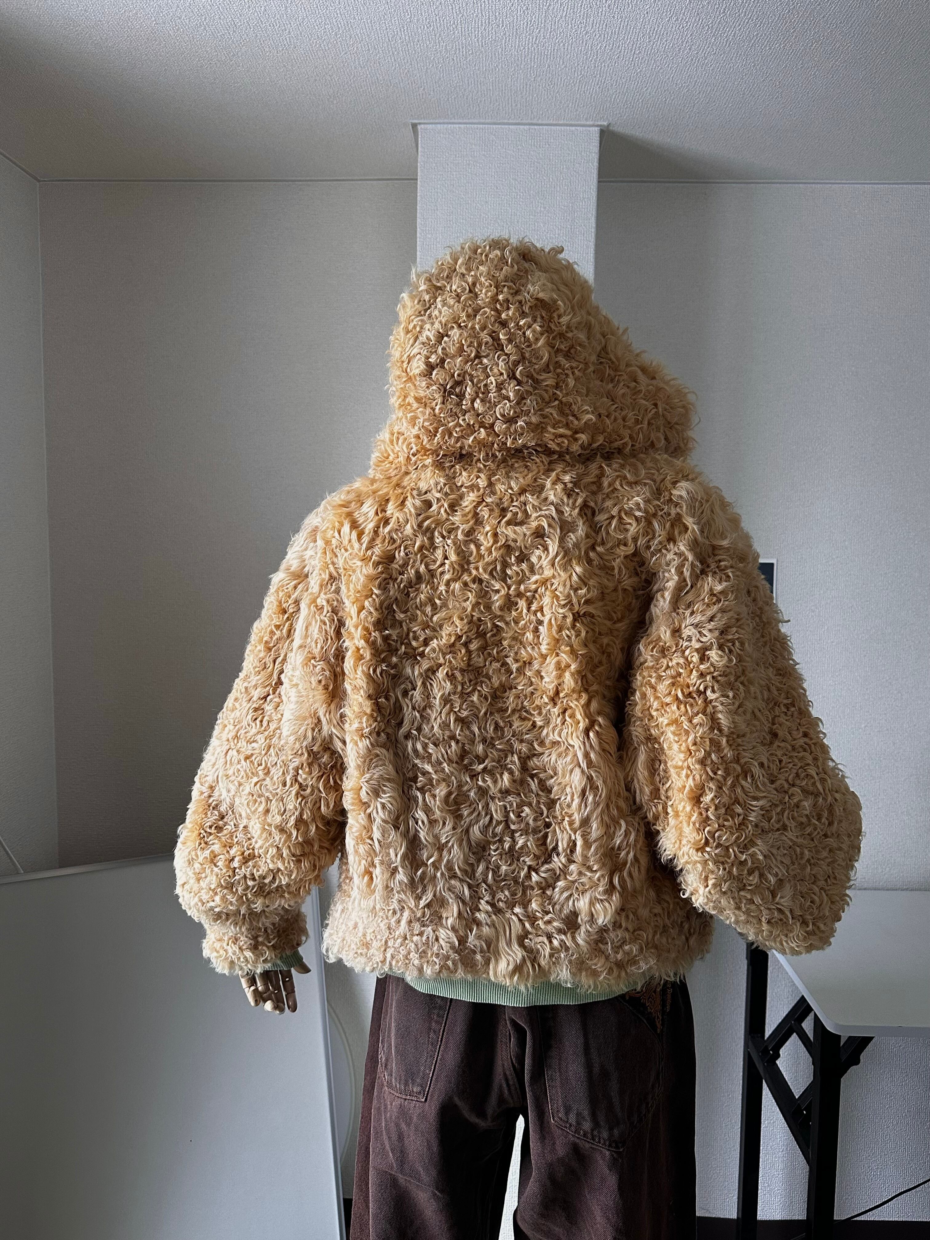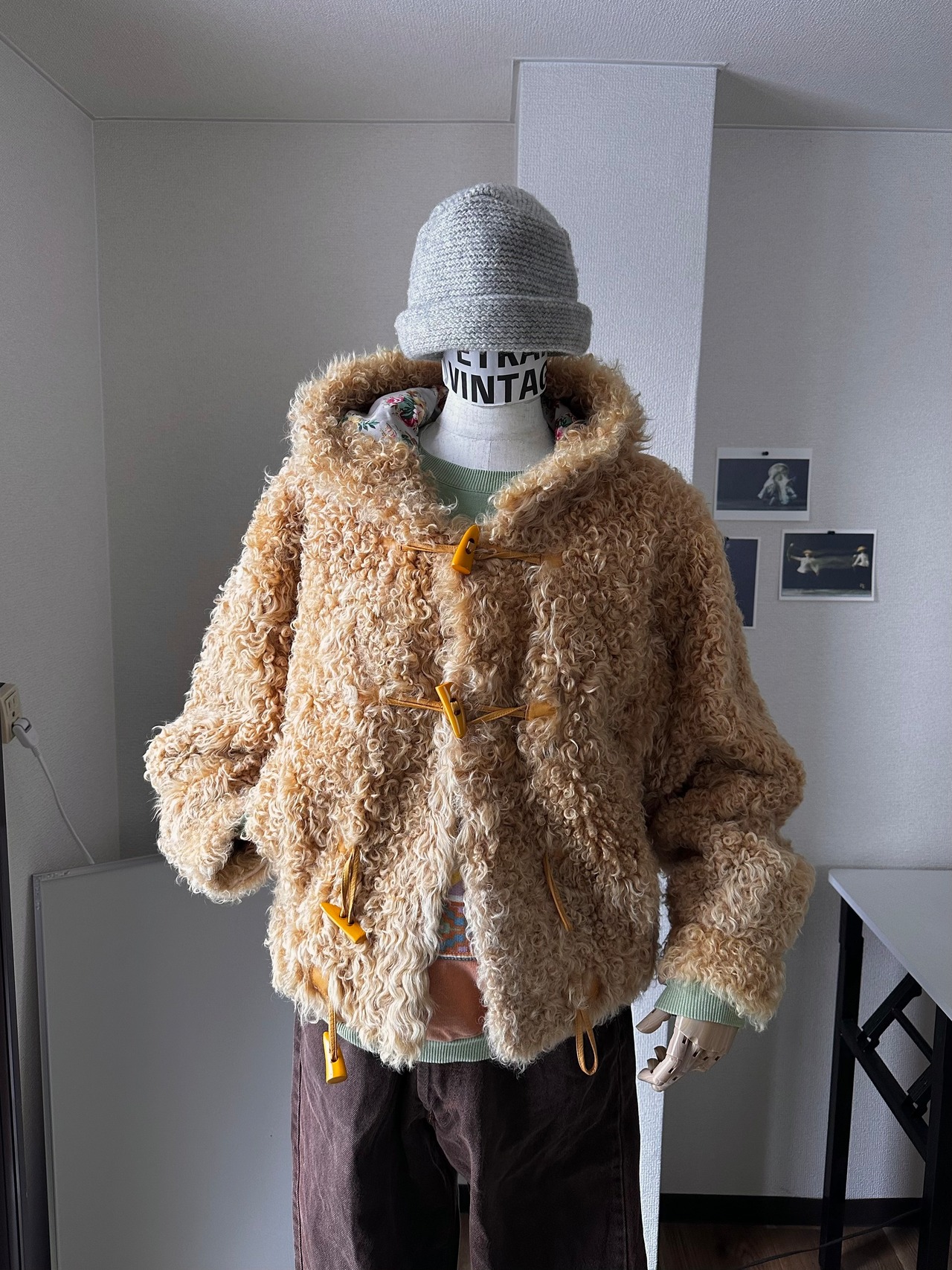 カルガンラムのカーリーファーを使って仕立てられたショートダッフル。