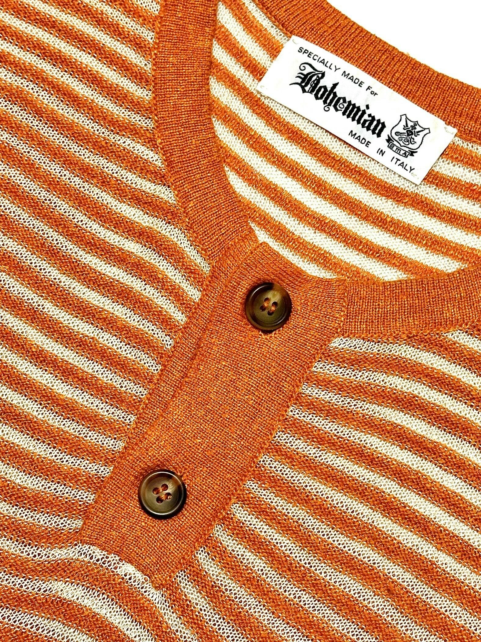 80-90's BOHEMIAN White×Orange Border Soft Knit Tee
