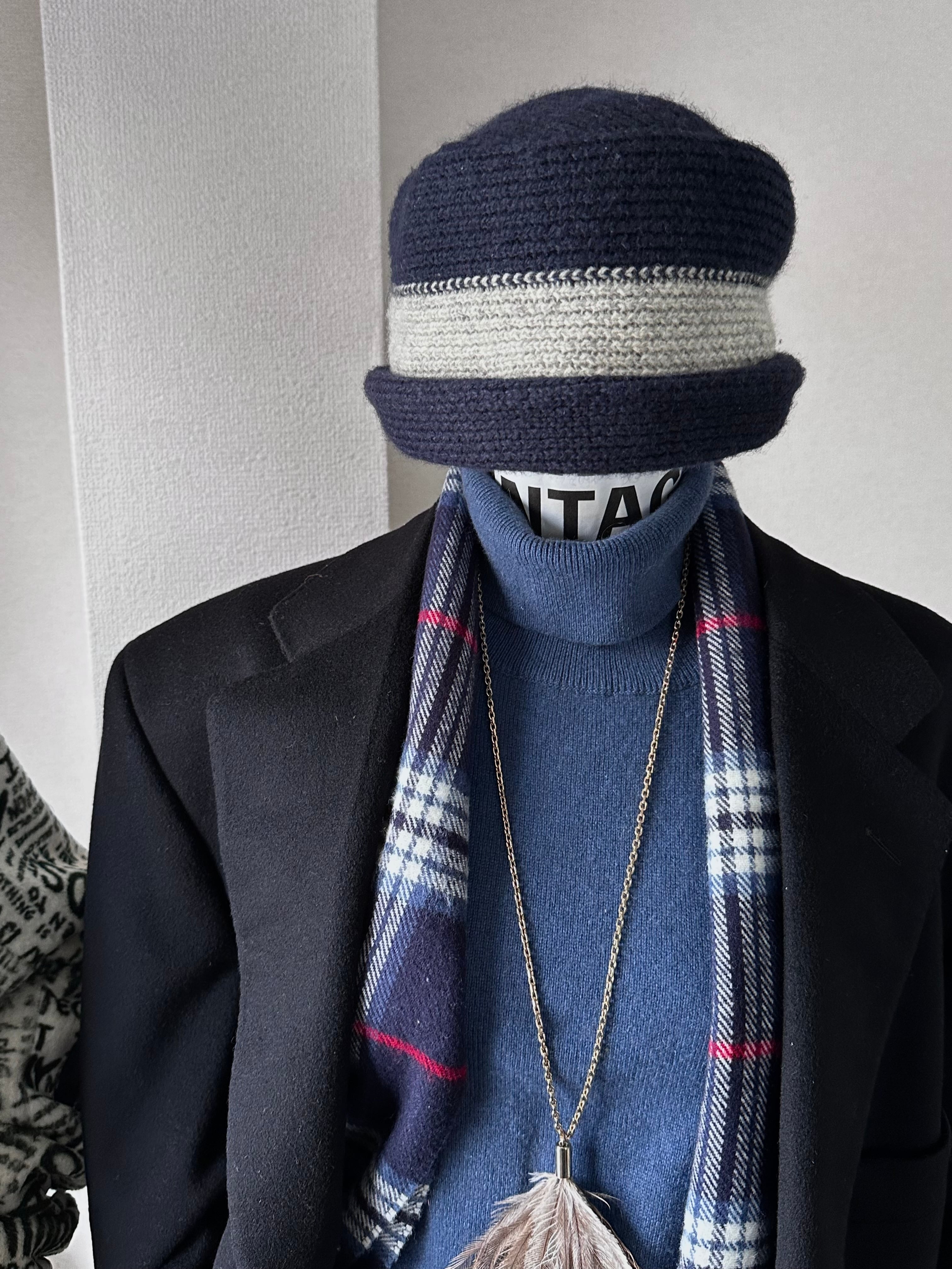 80-90's JAPAN MADE Milky Navy Cashmere Turtle_Neck KN