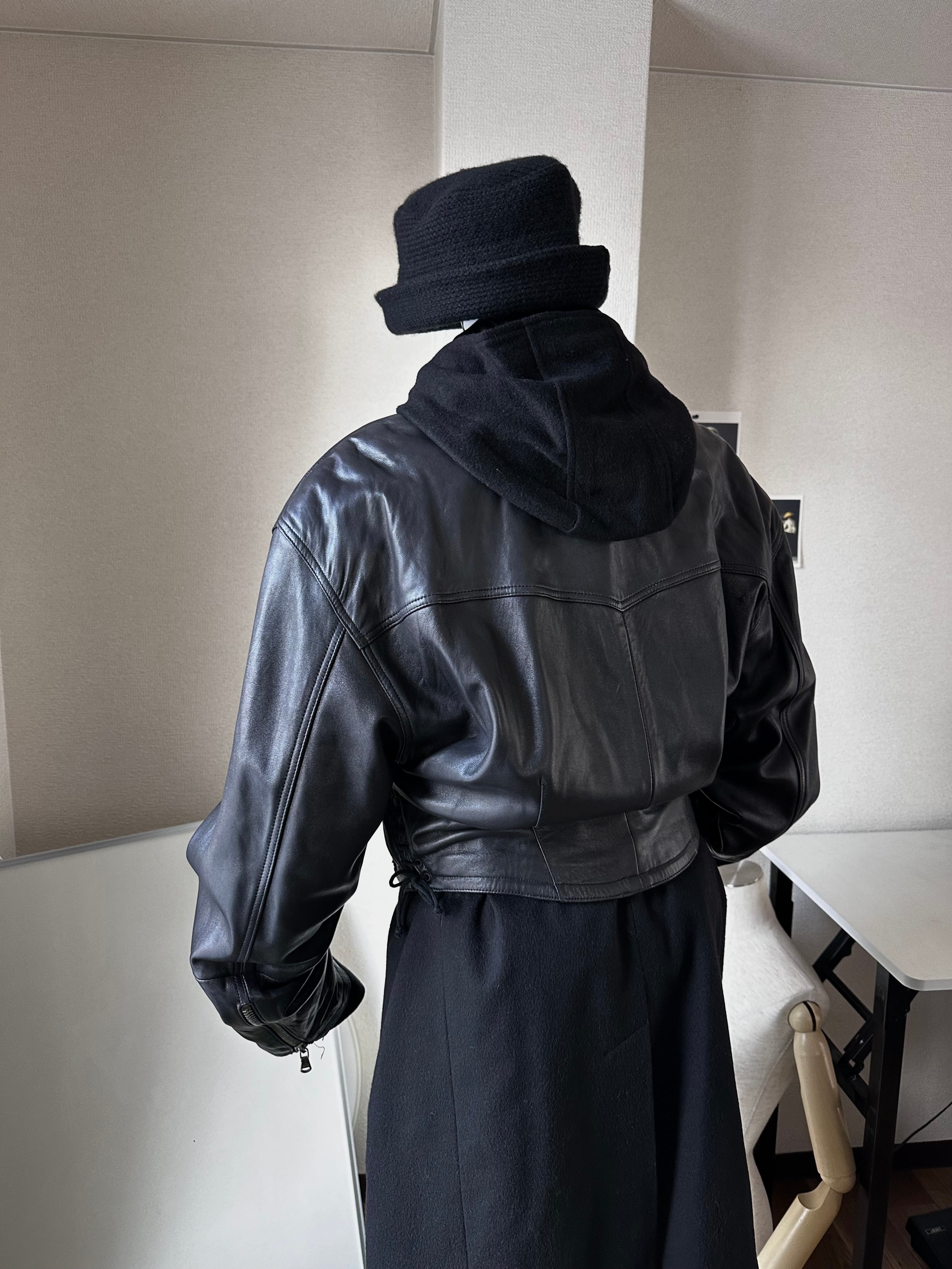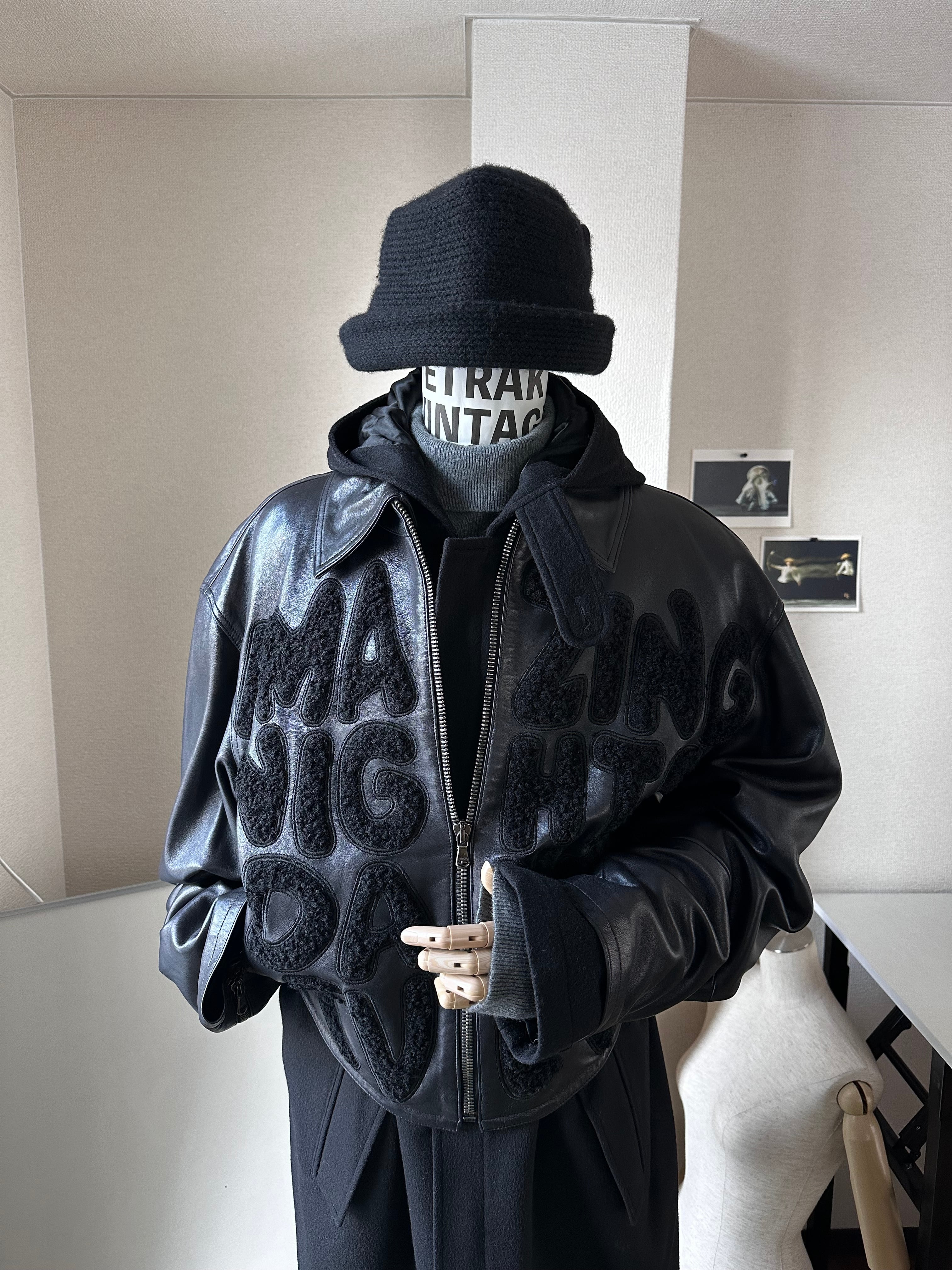 テロテロのレザー(多分ラムかな)で仕立てられたボクシーなボマージャケット。