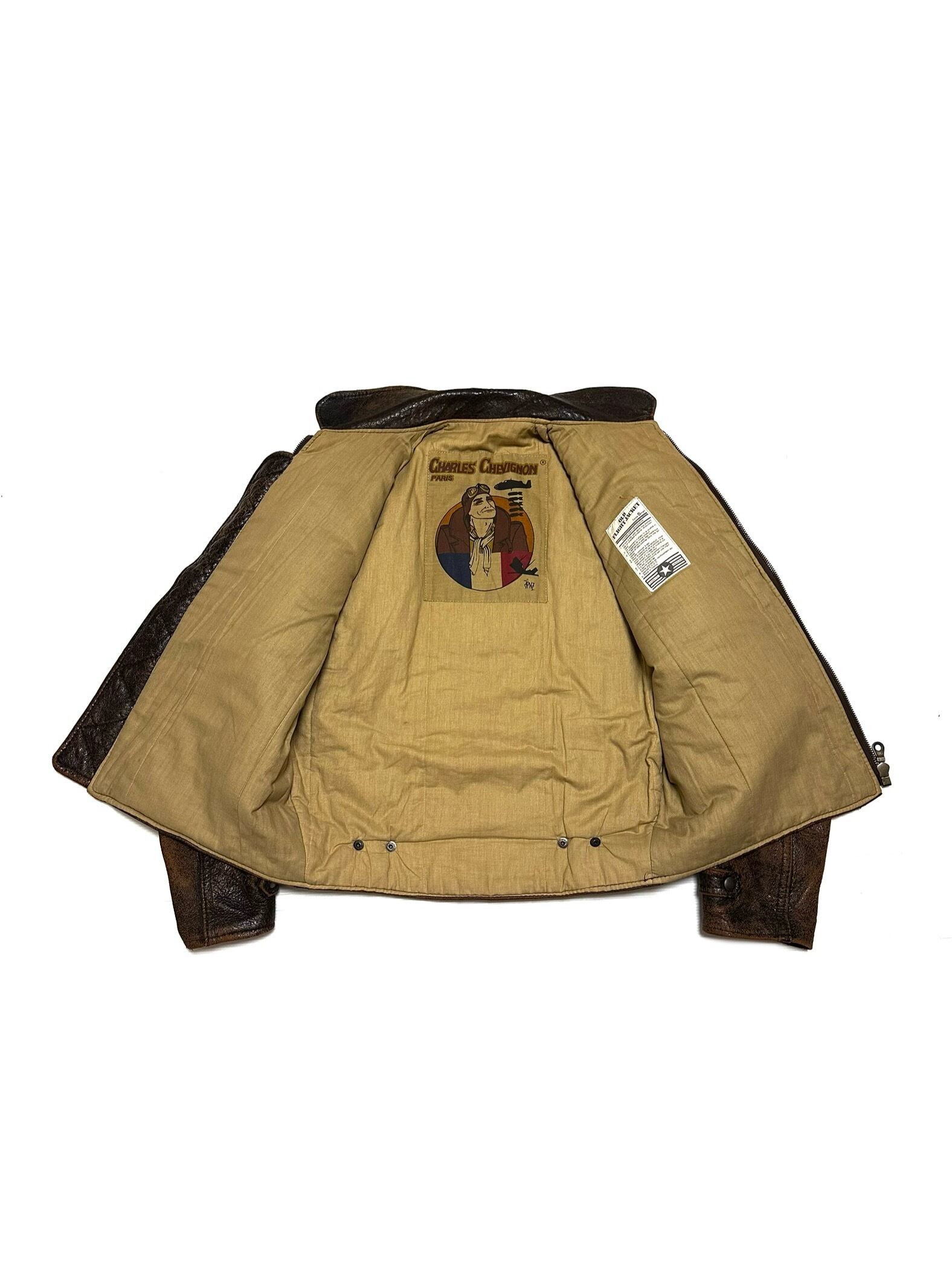 80's CHEVIGNON Faux_Crack Design Leather Flight JKT
