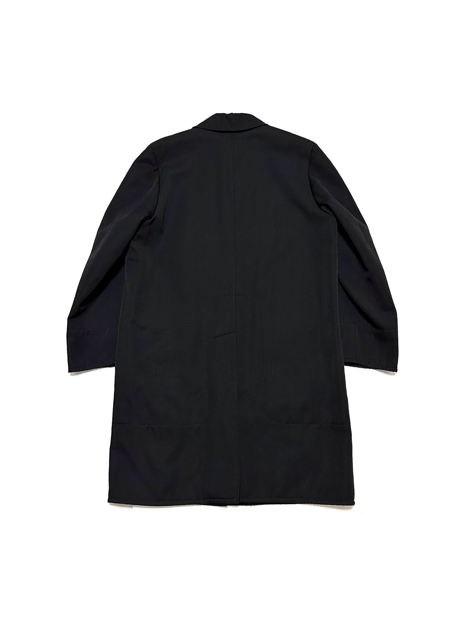 真っ黒のウールギャバジンで仕立てられたクラシカルなバルカラーコート。