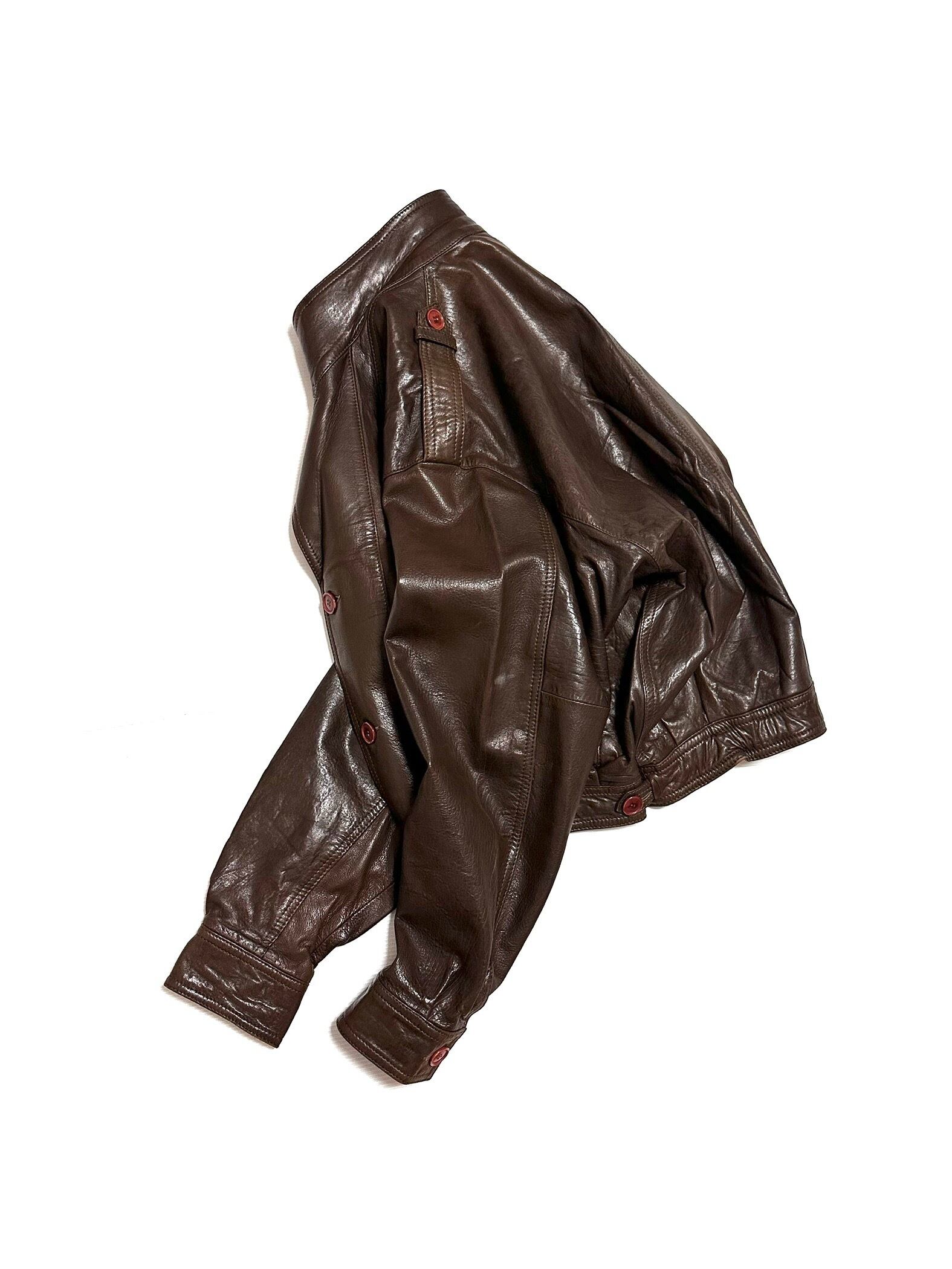 c80's NINO CERRUTI (EURO) Decorative Cutting Loose_Body Leather JKT