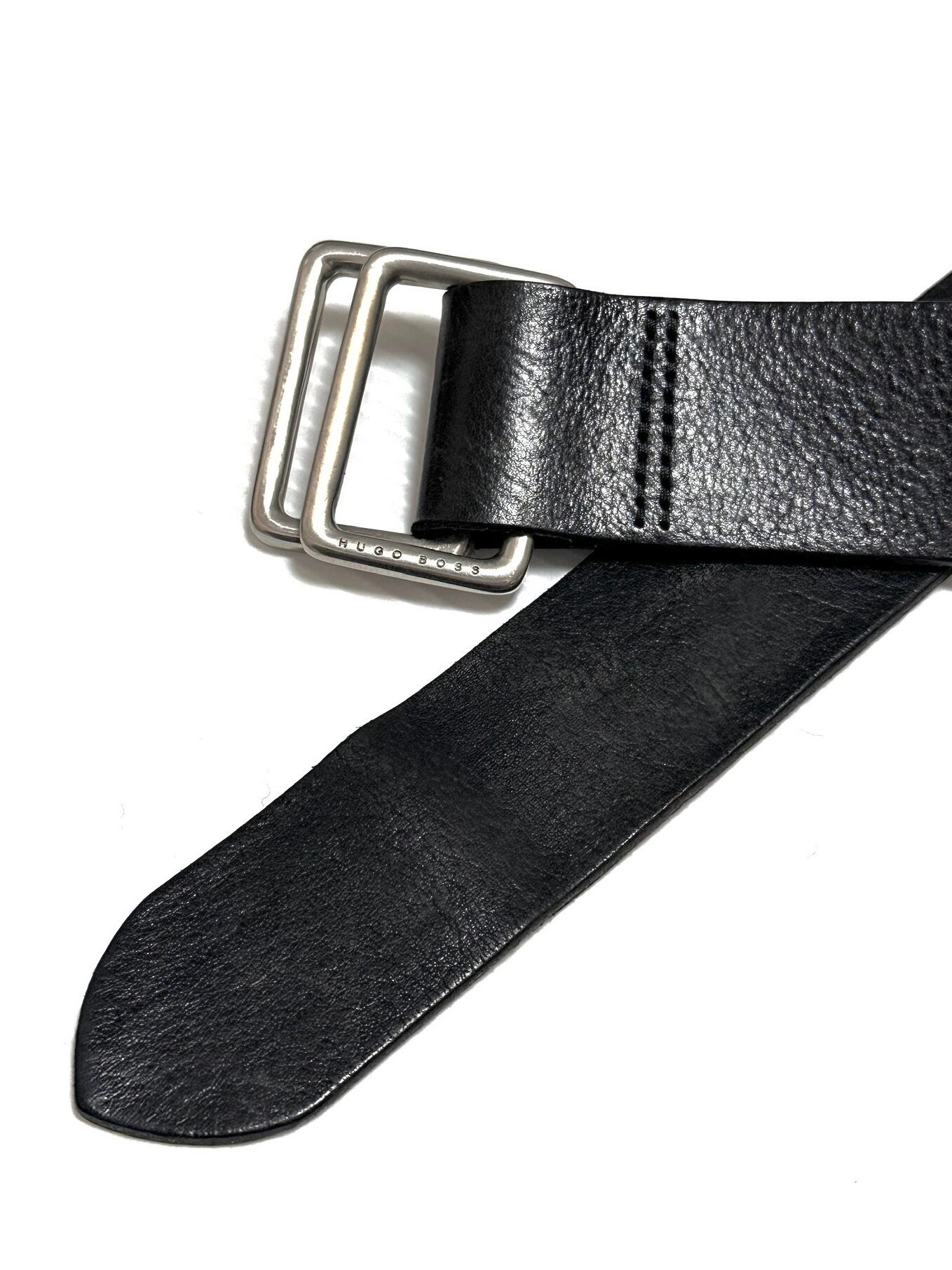 HUGO BOSS Square-Rings Buckle Black Leather Belt